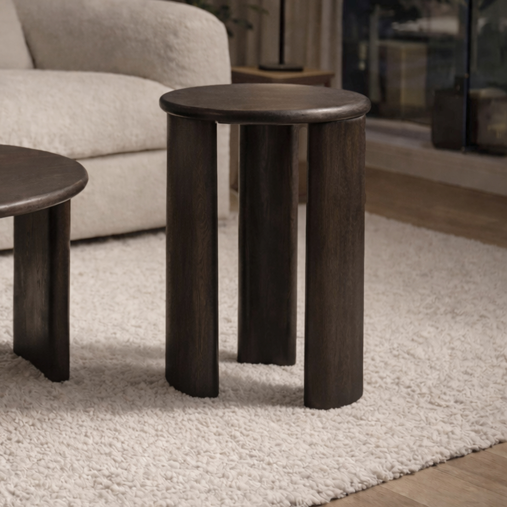 Solid mango wood grain shows beautifully through the rich mocha finish of this table. The rounded edges on the thick table and the legs creates a warm, elegant feel. Perfect for formal or casual living spaces.