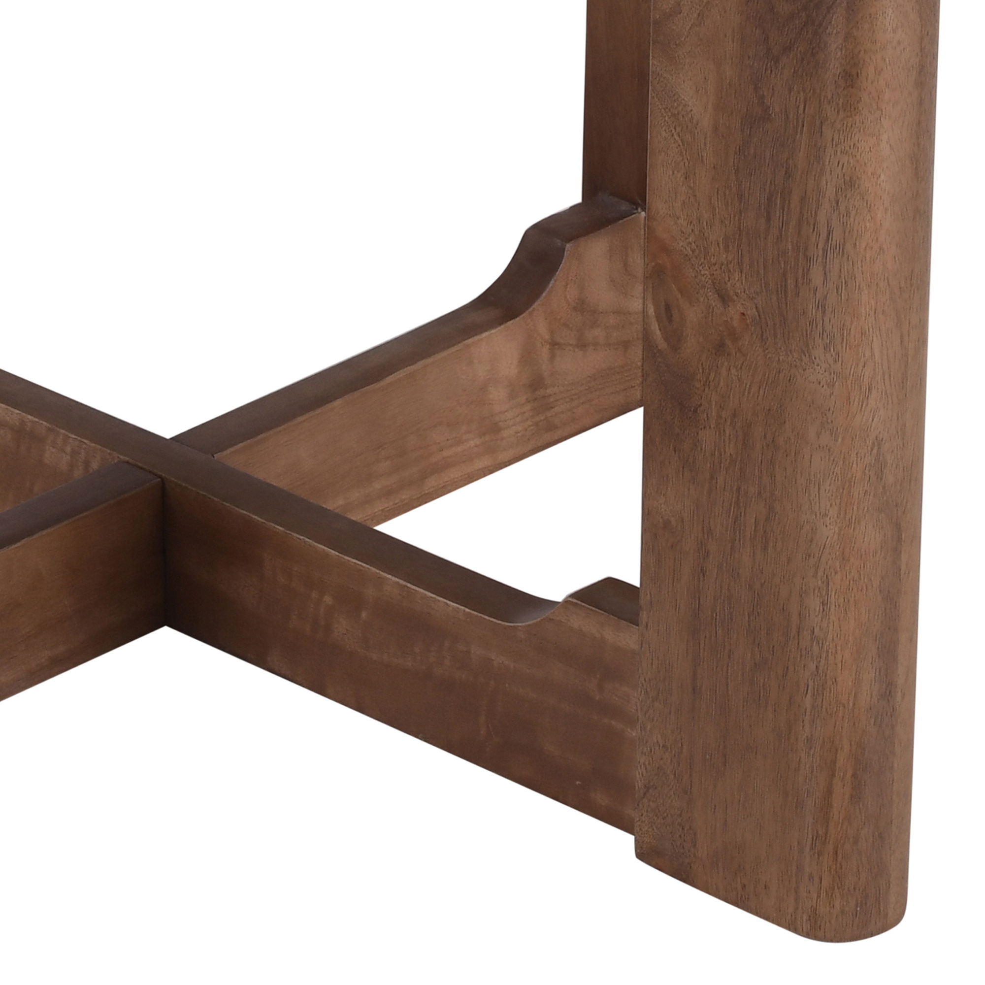 - Solid mango wood, cross base with a walnut finish