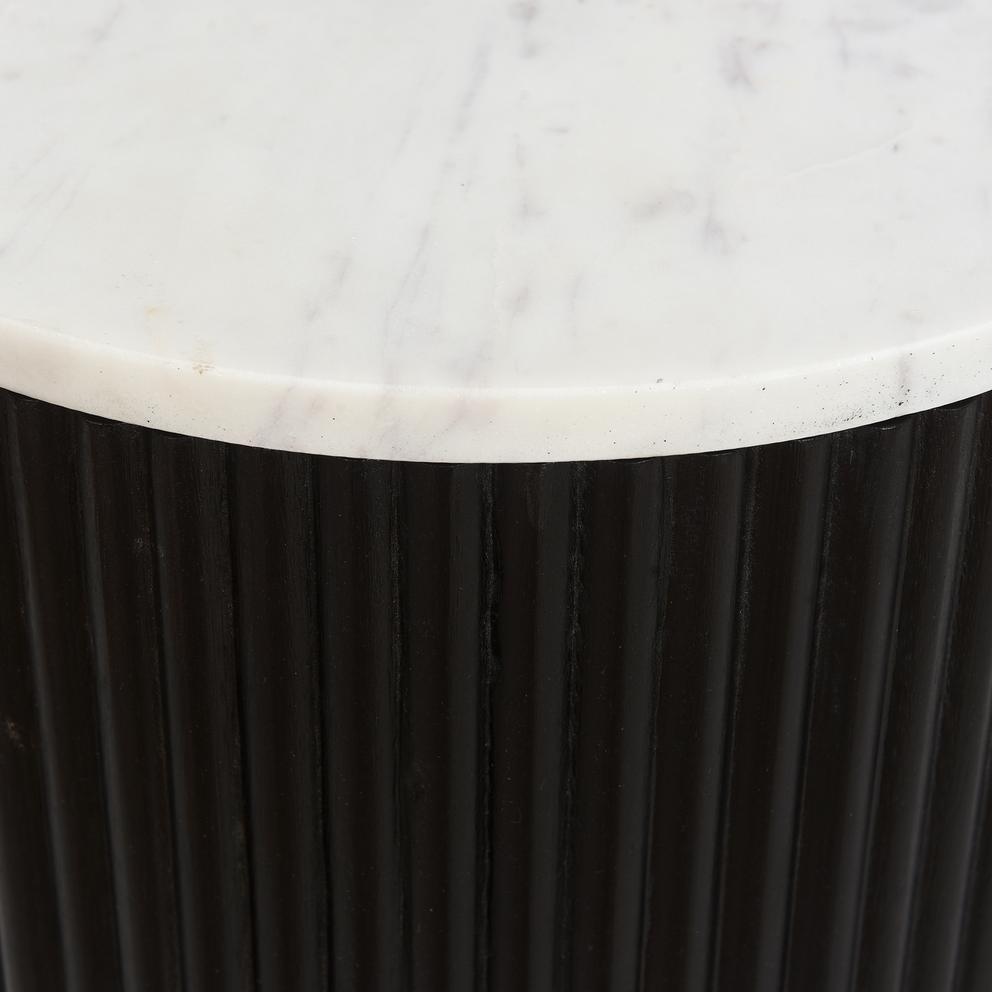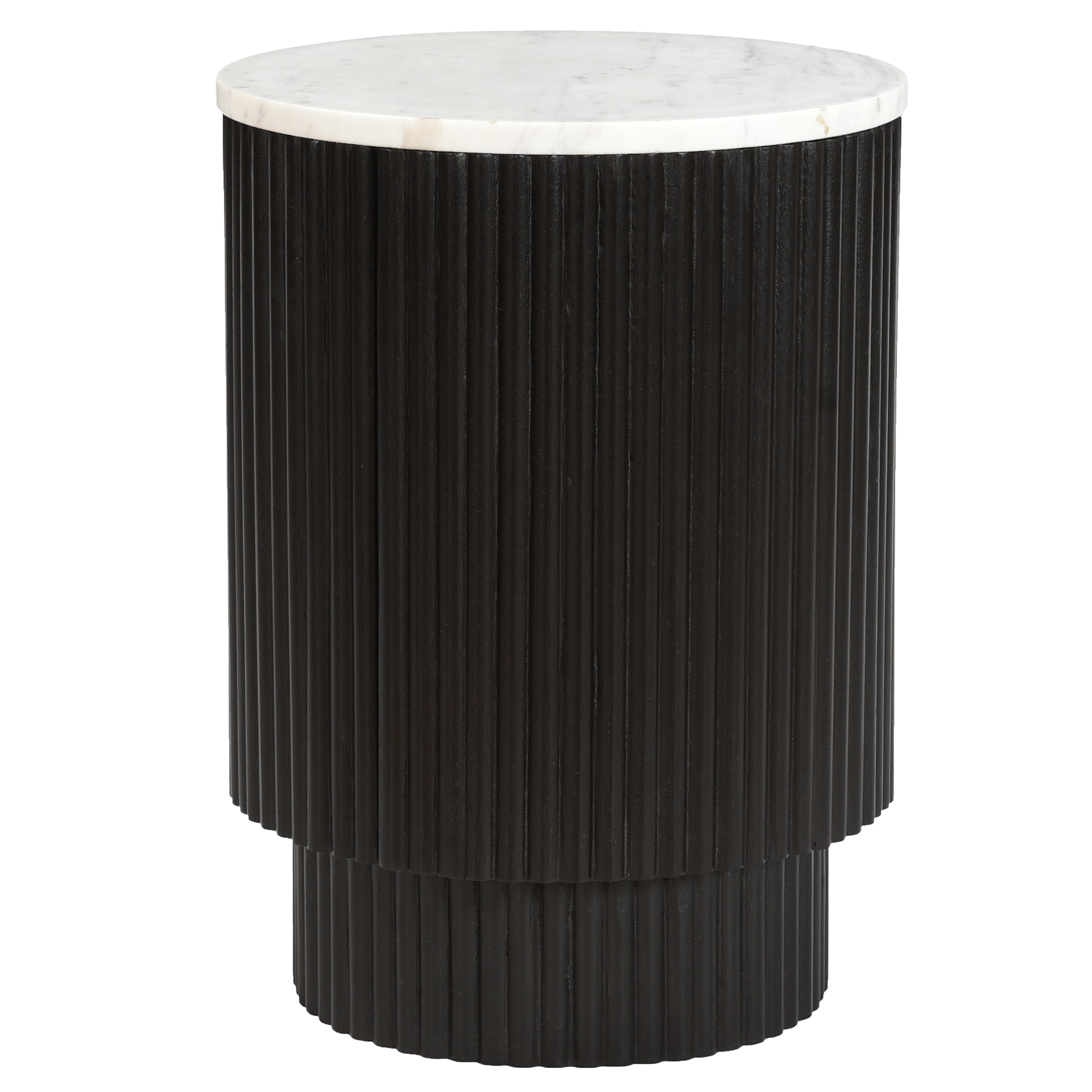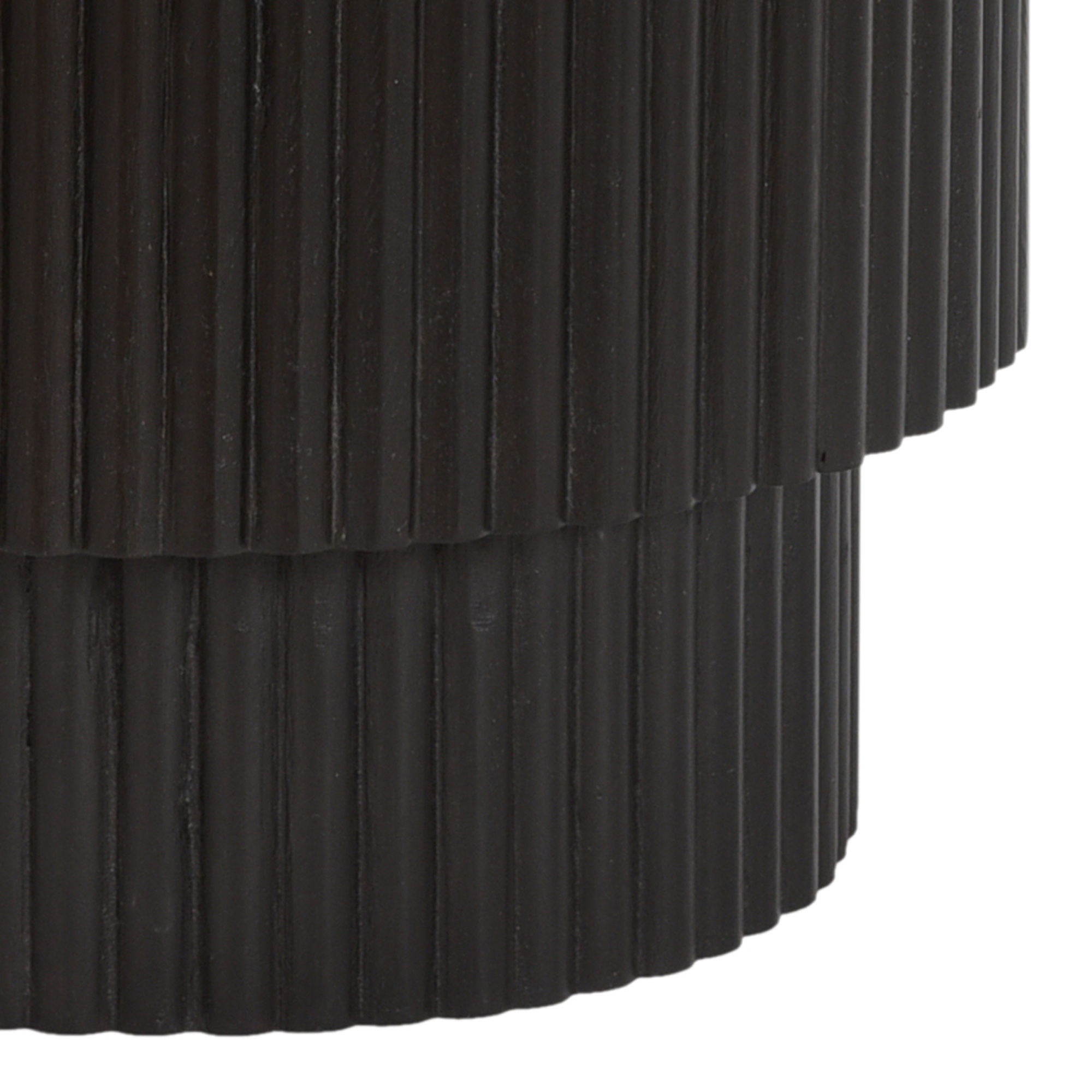 • Solid mango wood, pedestal-style accent table, reeded design with a black finish