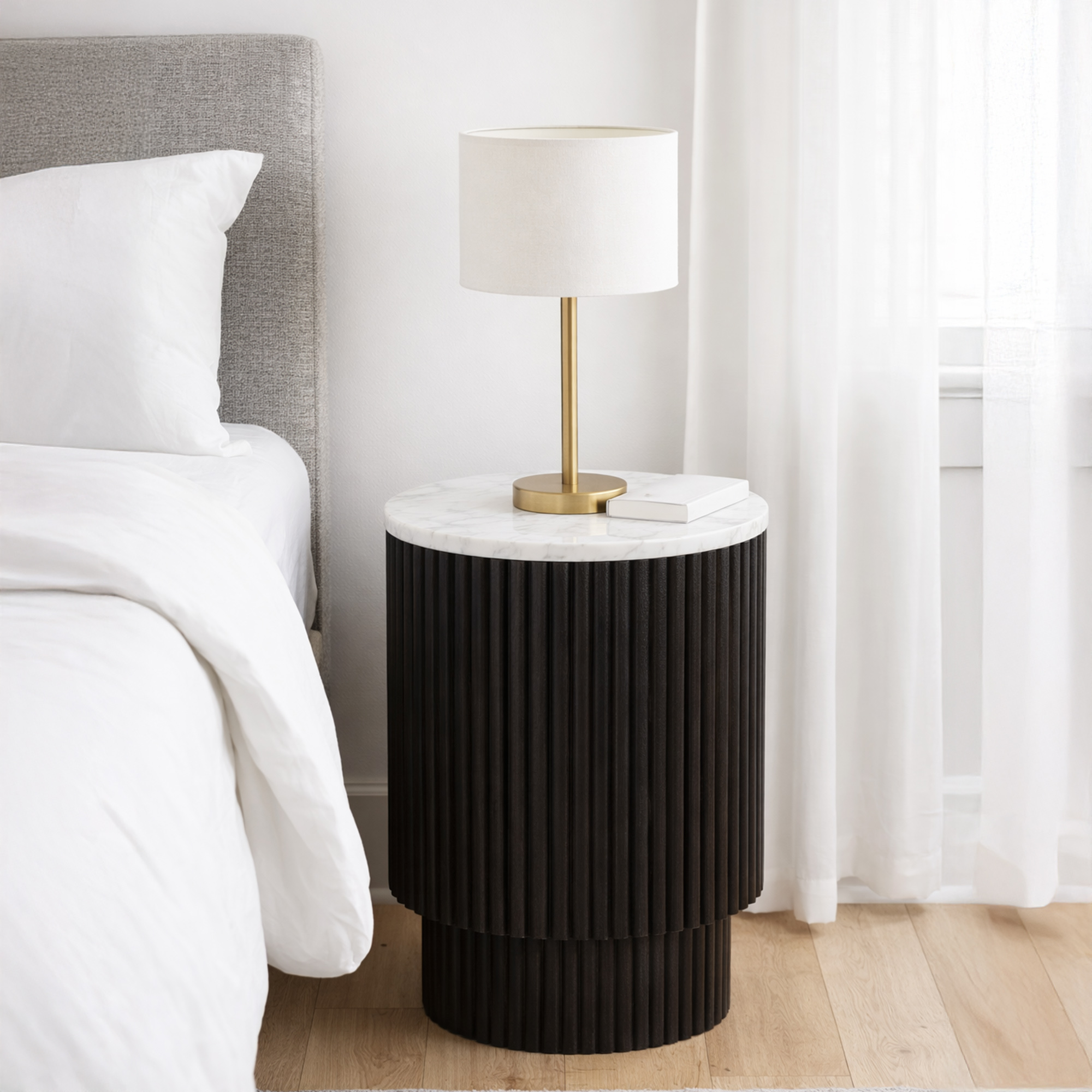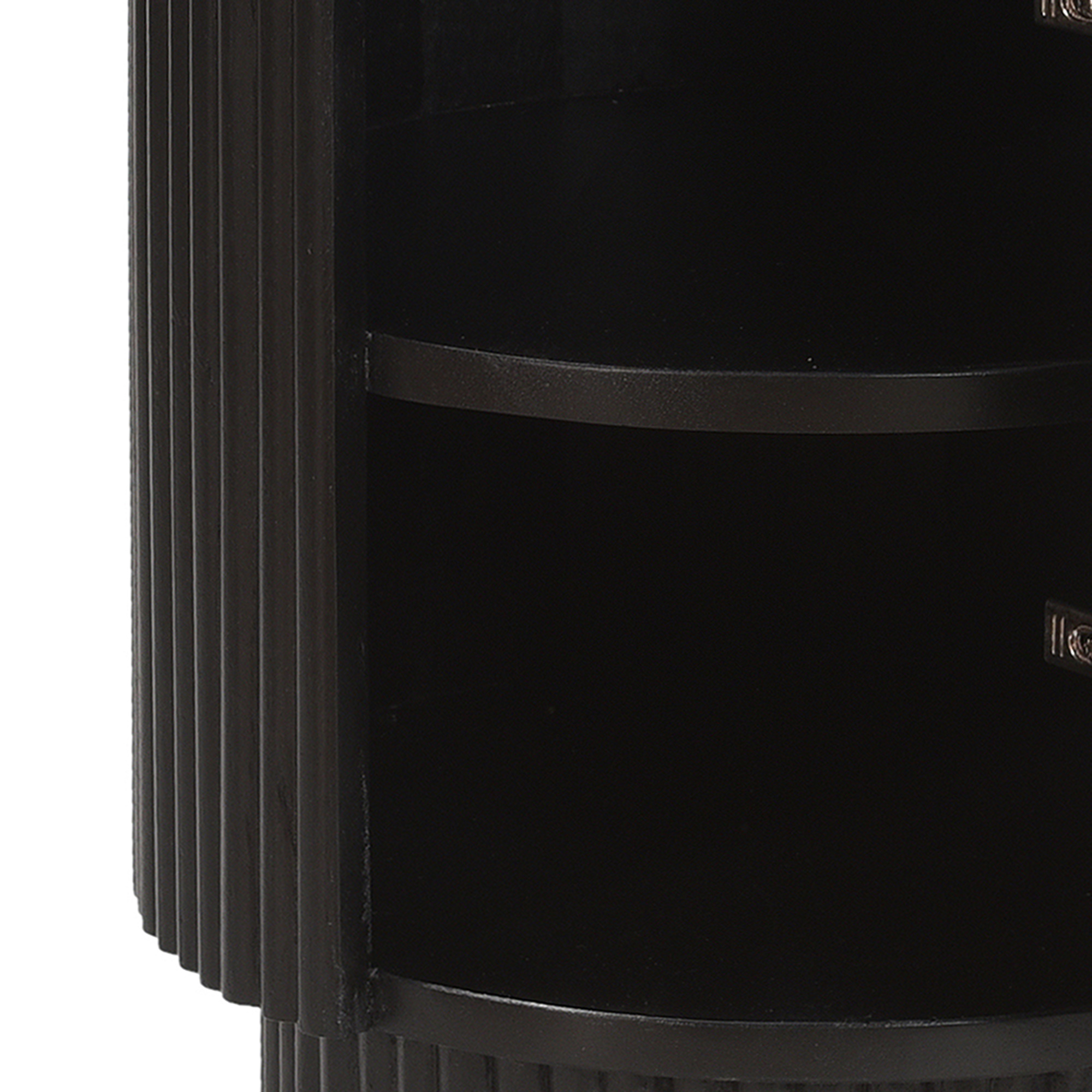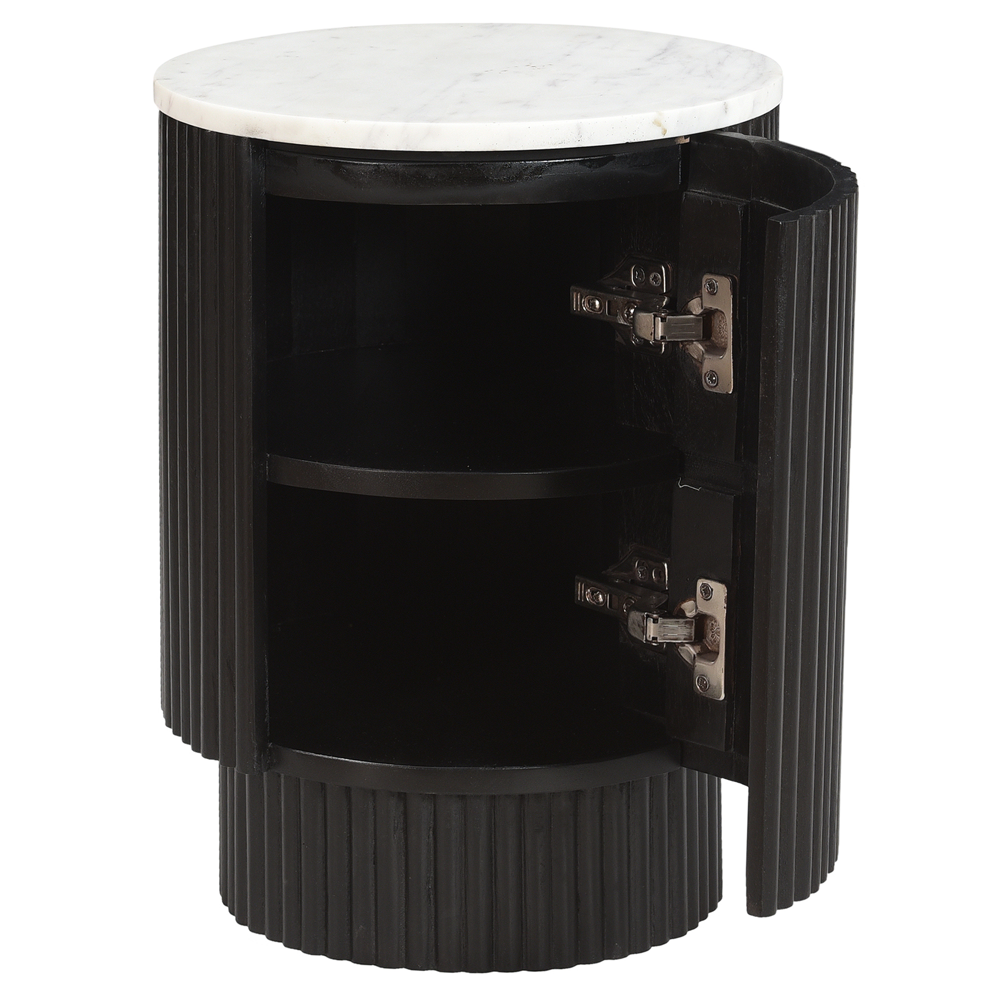 • Solid mango wood, pedestal-style accent table, reeded design with a black finish