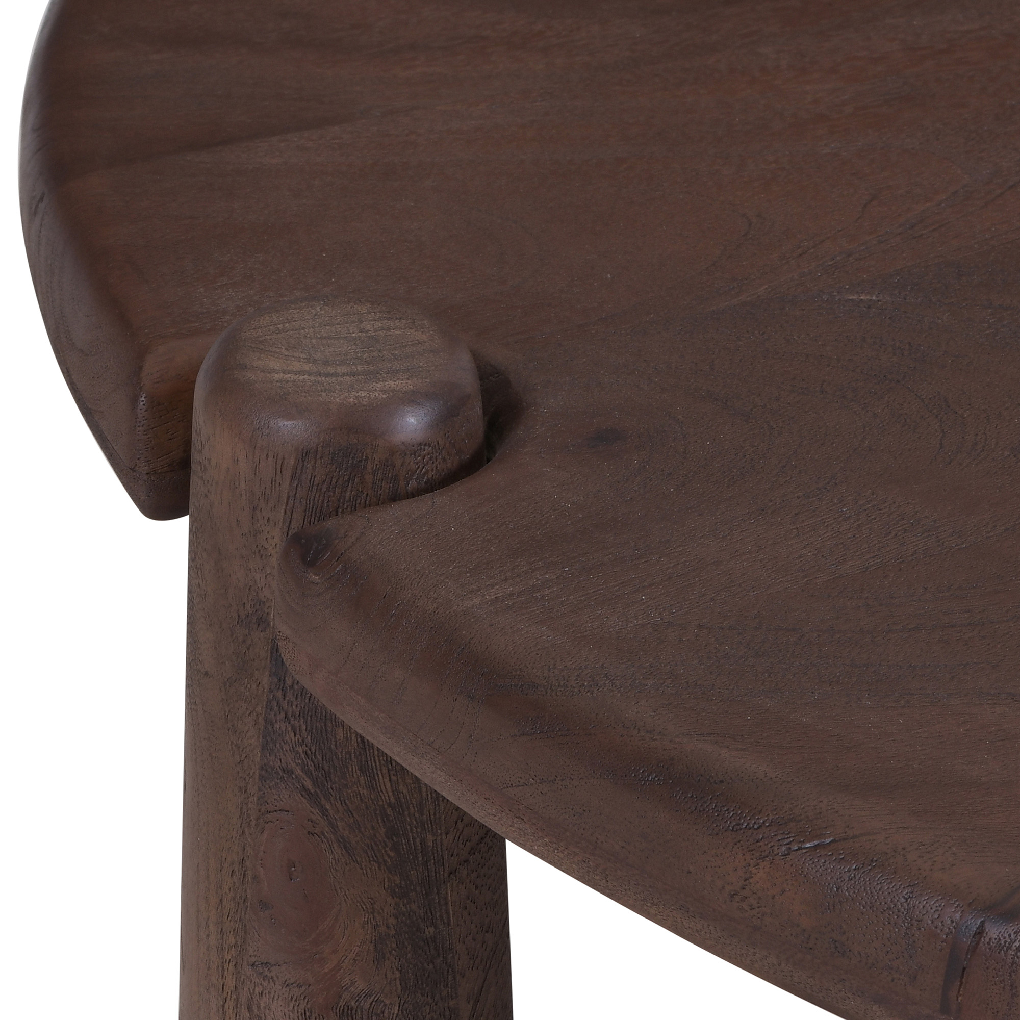 - Solid mango wood top and legs, rounded edges, with a dark walnut finish