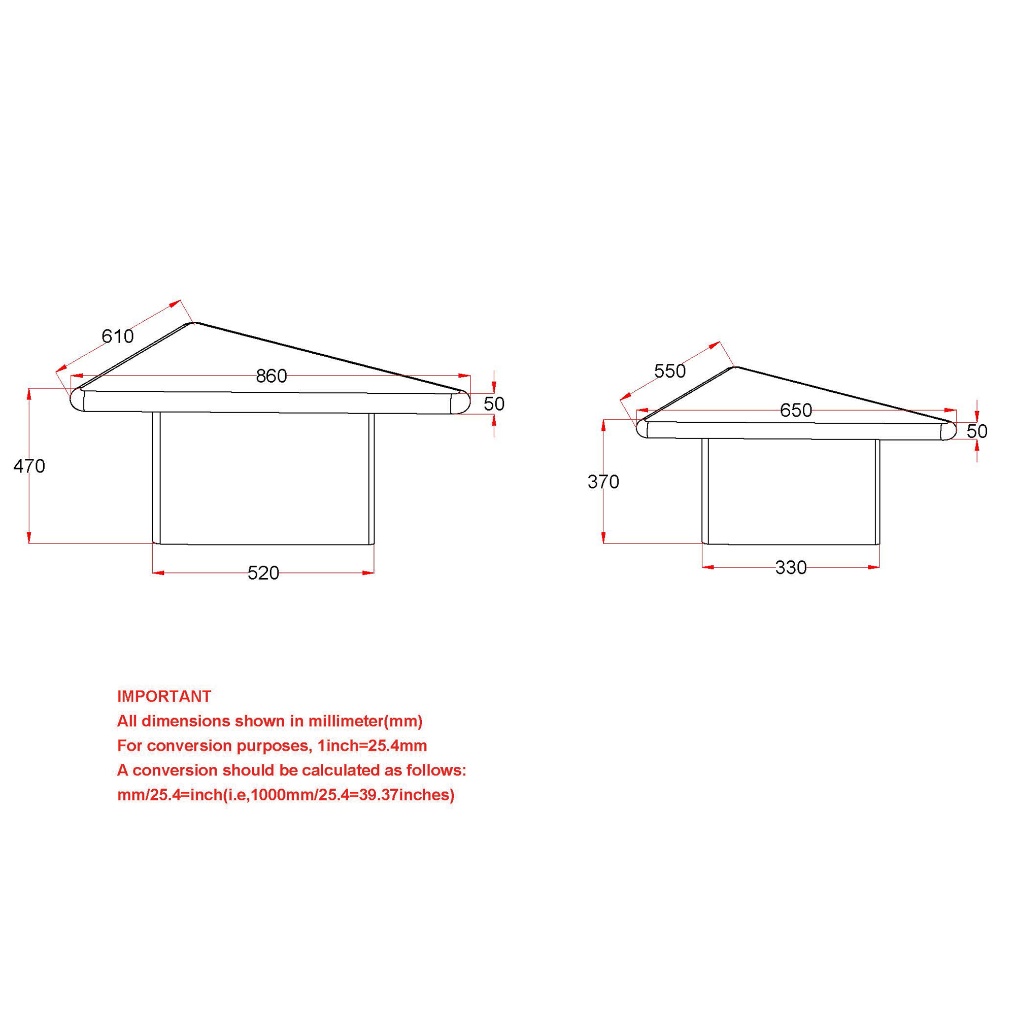 - 2-piece sturdy triangular table design