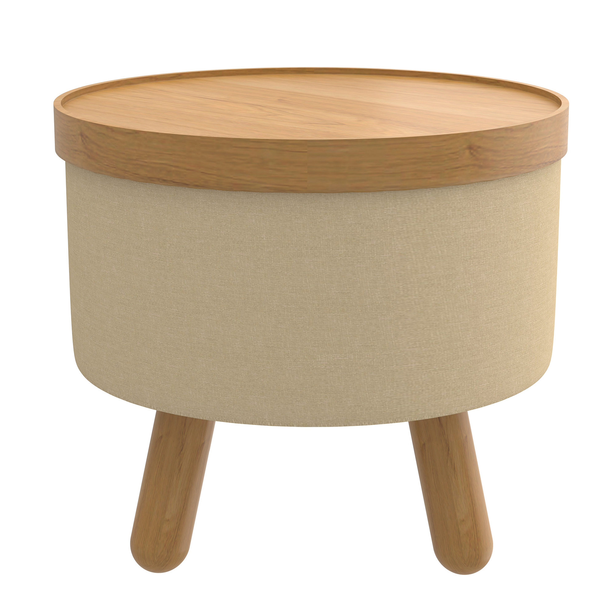 Betsy Round Storage Ottoman with Tray in Beige and Natural