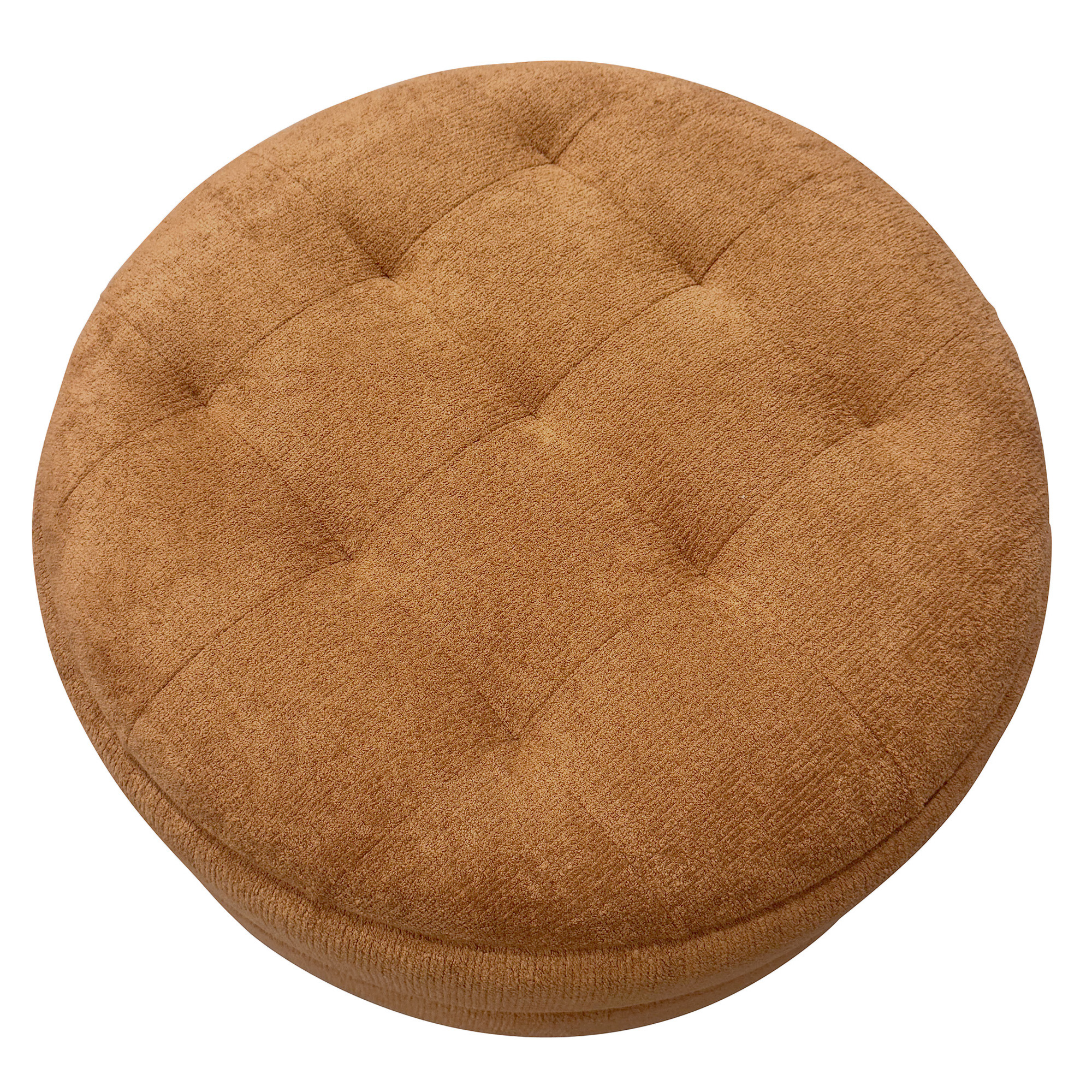 Inject a little fun into your space with this cute and cosy storage ottoman. Spacious storage is topped off with the square-patterned tufting on lid. Underside of lid has a natural-finish, engineered wood panel - flip the lid and use as a side table.
