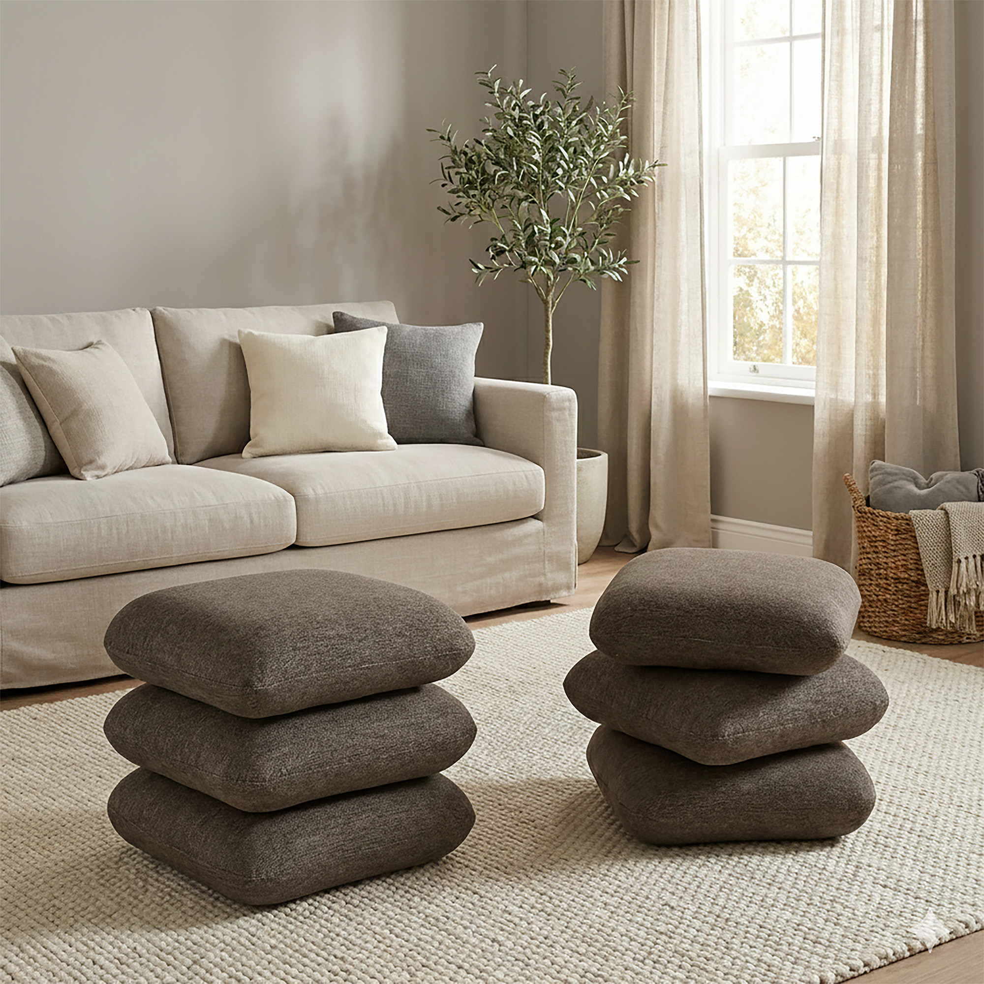 Bring some fun into your space with this adorable square swivel ottoman. The design looks like stacked cushions, can swivel on both levels to sit just how you want them. Great for extra seating when needed, or to kick up your feet after a long day. You'll want one in every room!