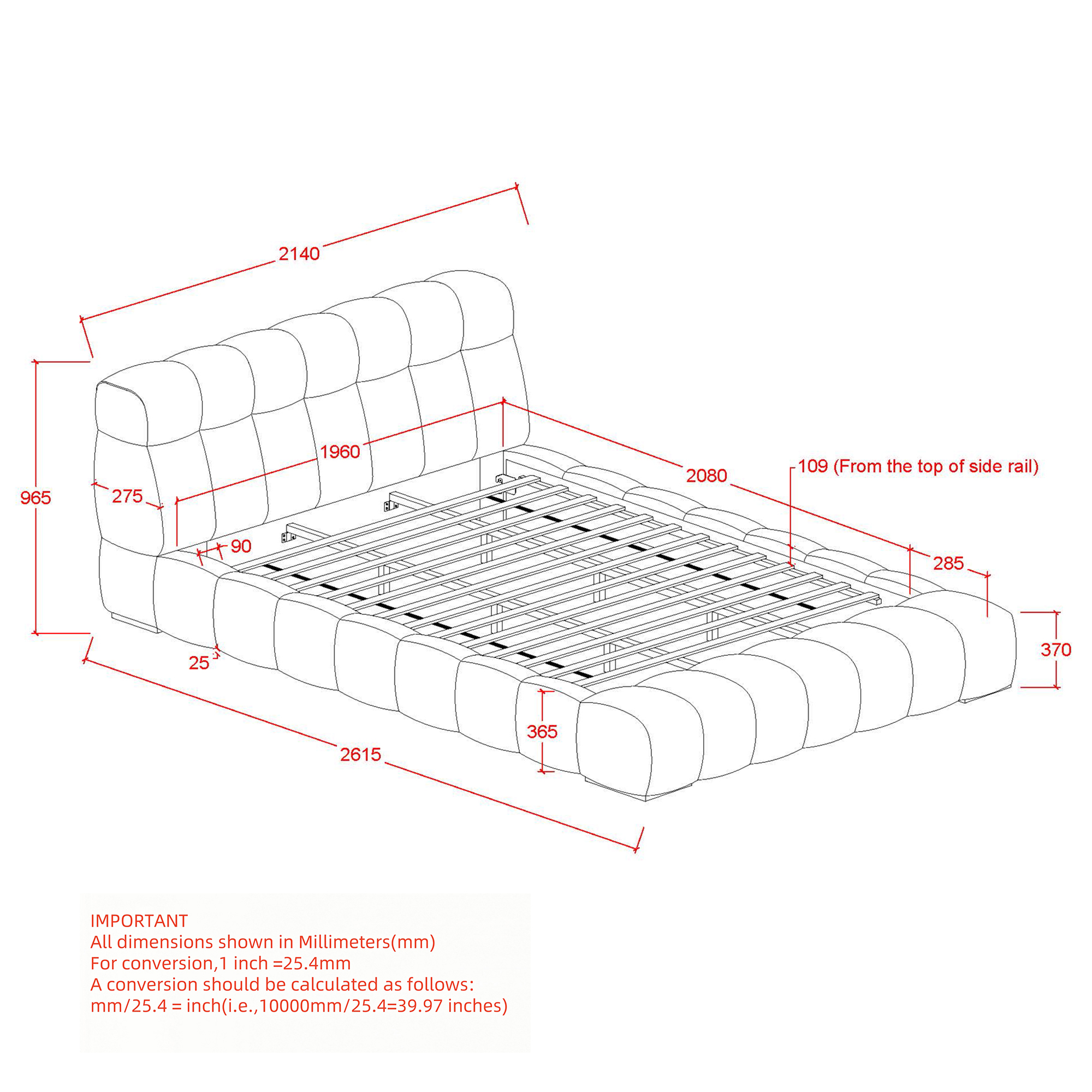 - Modern platform bed; no box spring required