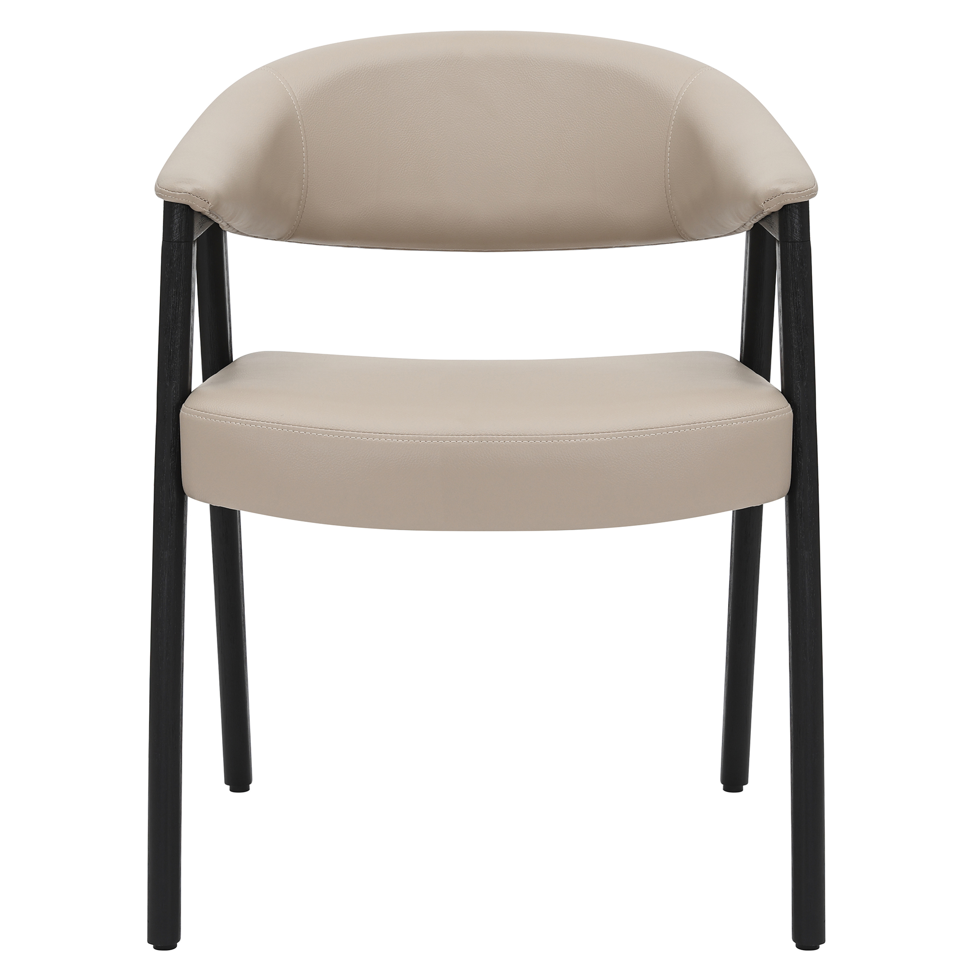 The rich combination of mushroom faux leather and brushed black wood frame is irresistible on this armchair. Sturdy, curved back and seat with foam, web and springs means this chair is built for those long, lazy dinners and hours of conversation around the table. Perfect for casual or formal dining spaces, or as accent seating in any room of the house.