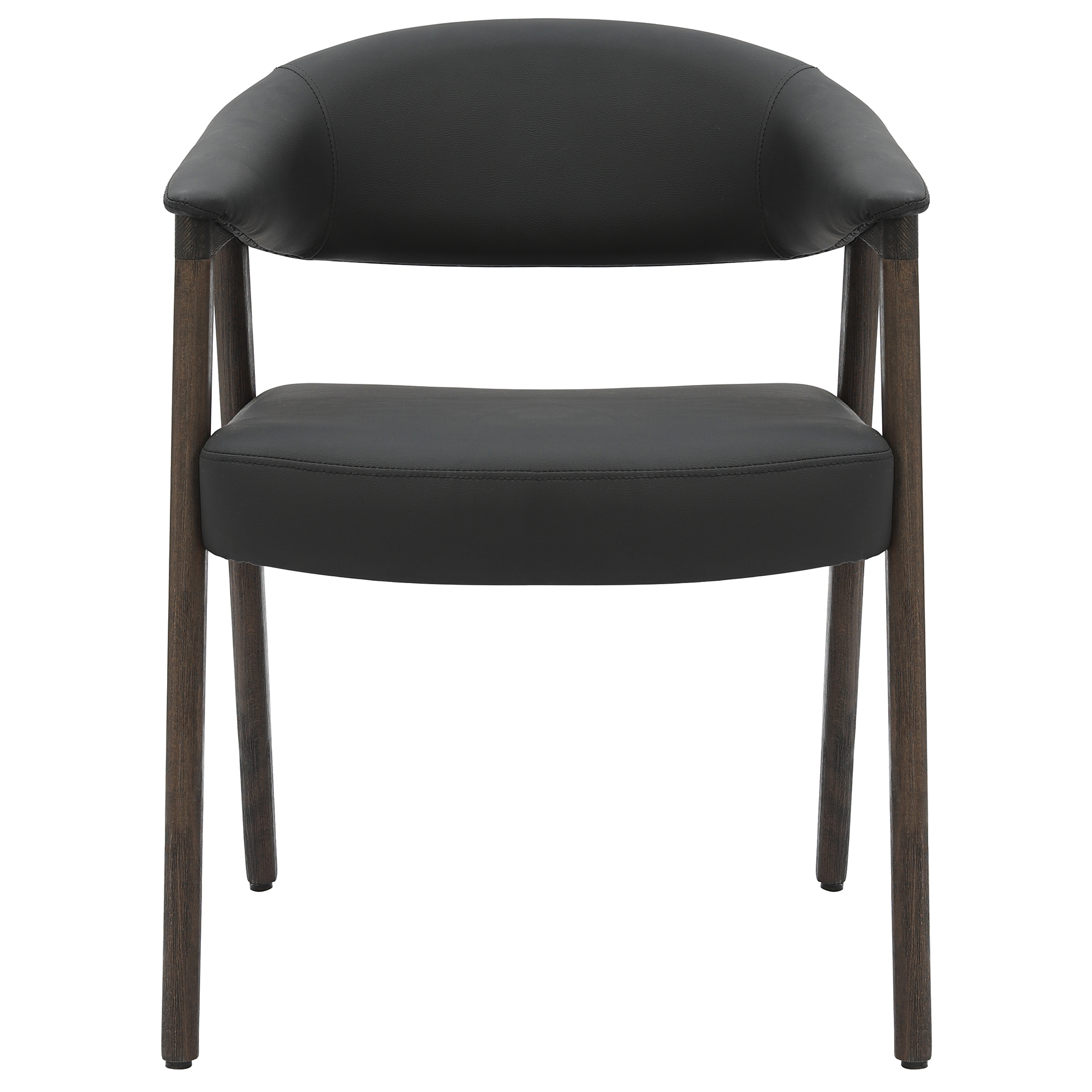Beautiful, mango wood dining table is built with sturdy construction, and brings a modern touch to the classic mid-century feel. The gorgeous finish has visible wood grains that will vary from piece to piece - a sign of the natural variances in the wood. The rich combination of black faux leather and brushed dark walnut frame is irresistible on this armchair. Sturdy, curved back and seat with foam, web and springs means this chair is built for those long, lazy dinners and hours of conversation around the table. Perfect for casual or formal dining spaces.