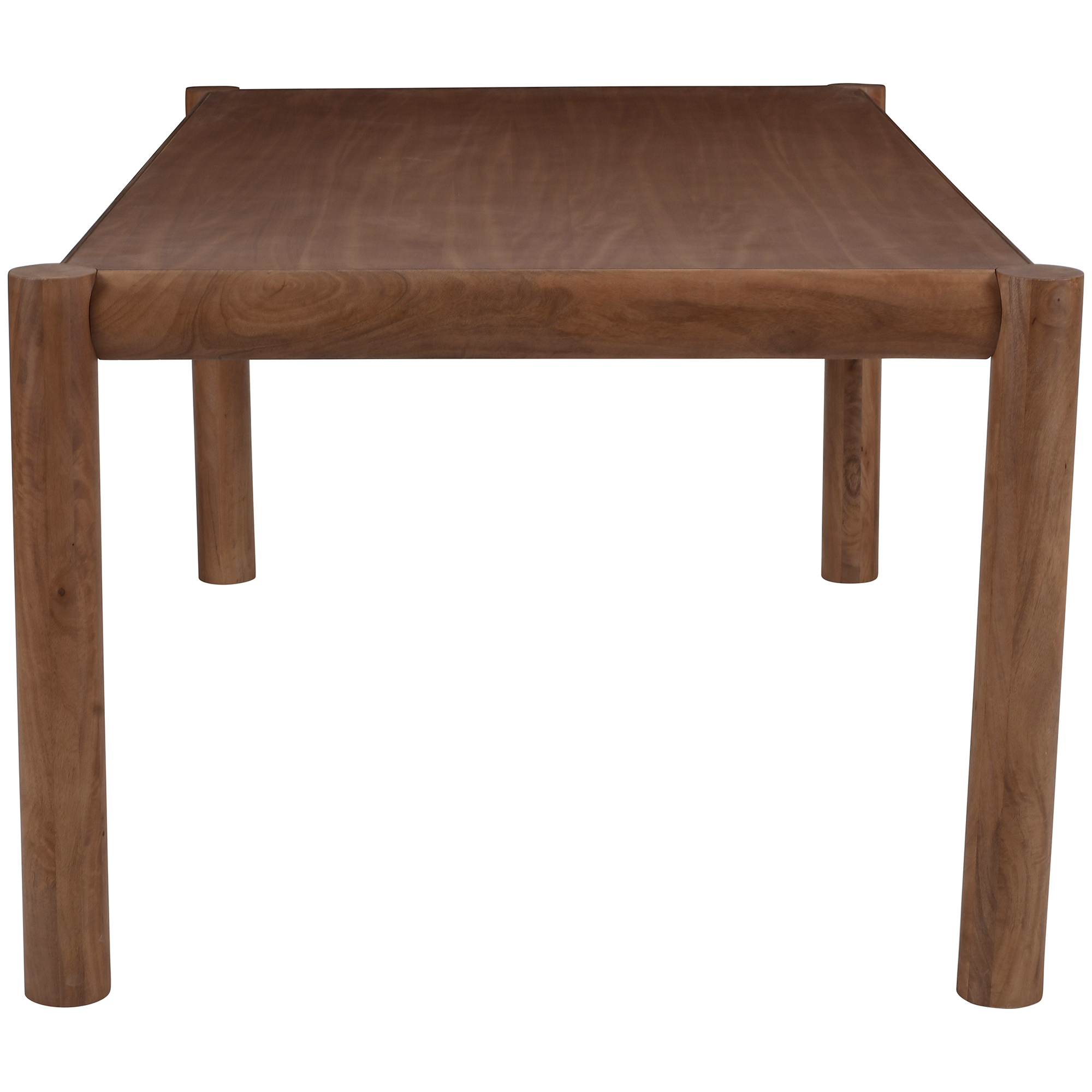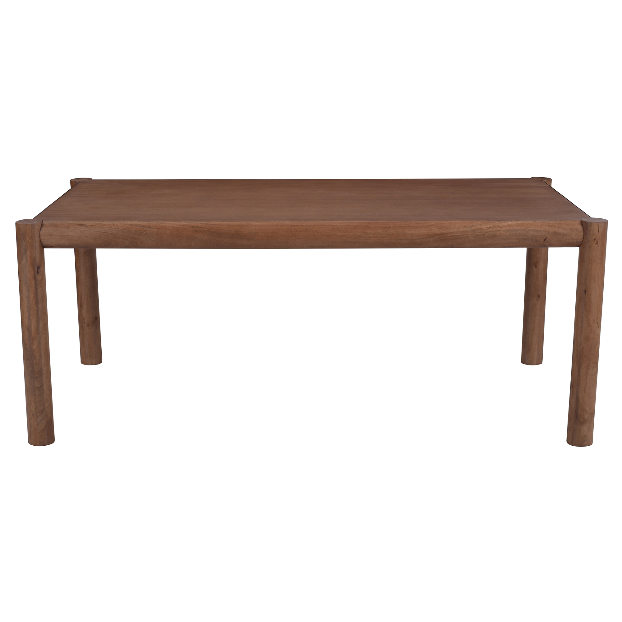 • Solid mango wood legs, engineered wood table top with mango veneer in a walnut finish