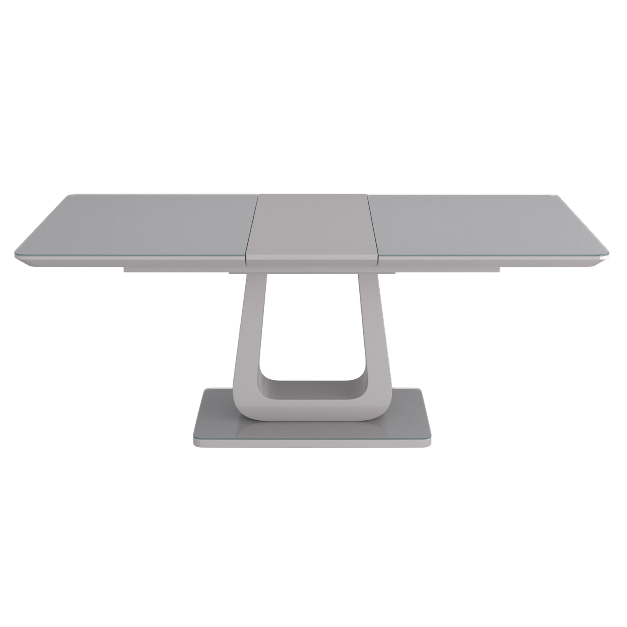 The high gloss, grey painted finish give this table a high end feel without busting your budget. Topped with a tempered grey-tinted glass on the table top as well as the base, this table will elevate your dining room design. The one-handed extension mechanism makes accommodating extra chairs quick and easy. The fun, modern pedestal base will start many conversations. Neutral colouring allows for an easy blend with many decor styles.
