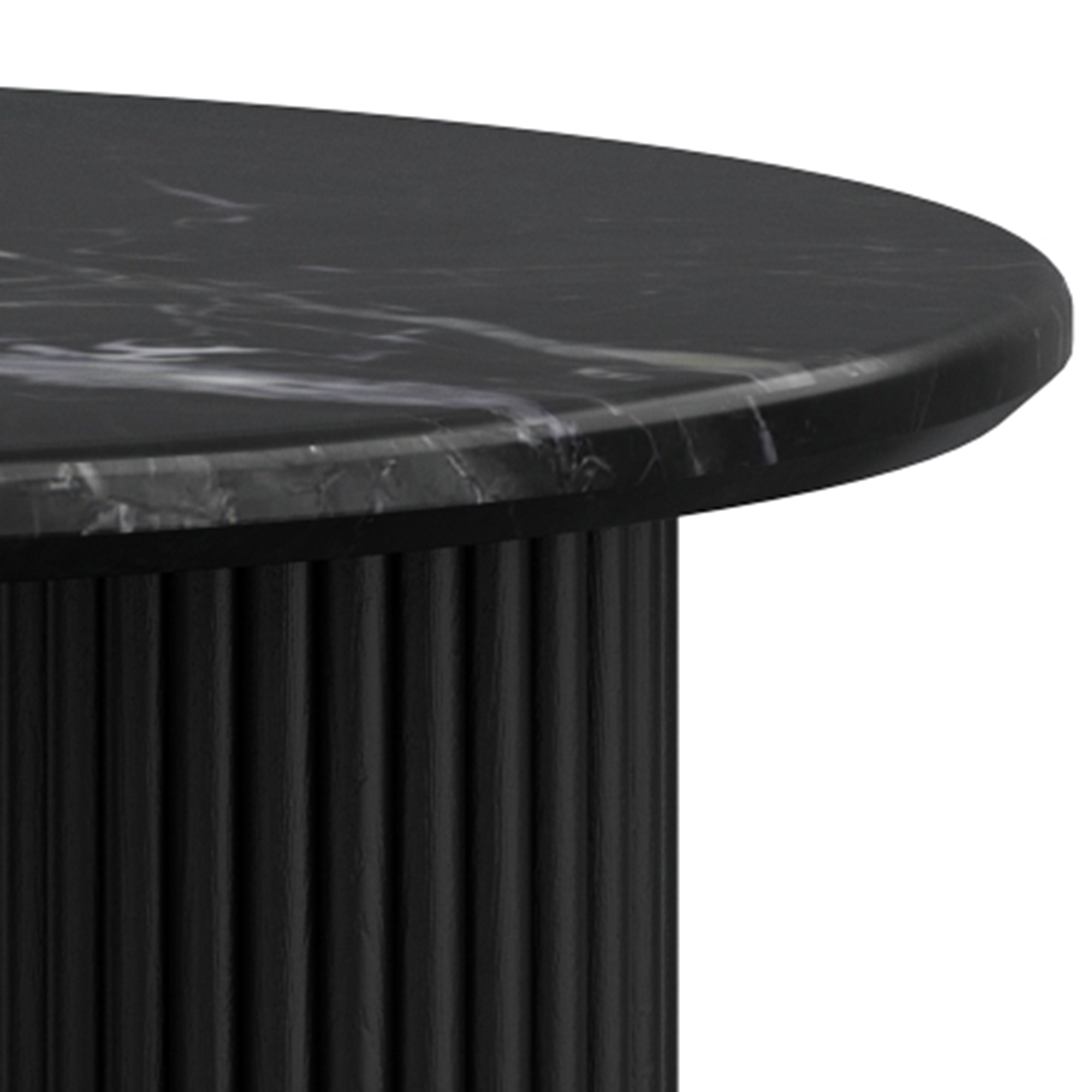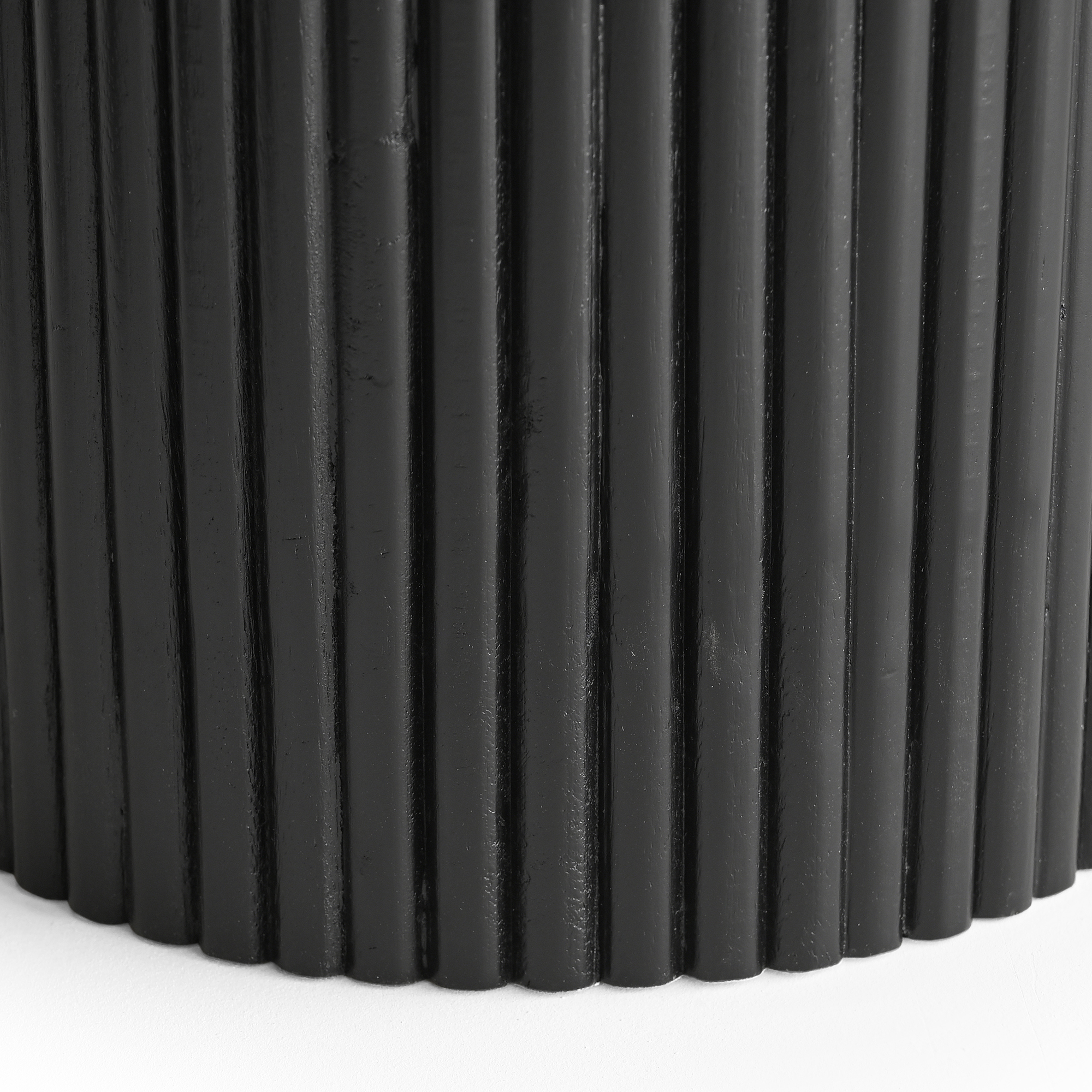 • Triple pedestal solid mango wood reeded base in a black finish