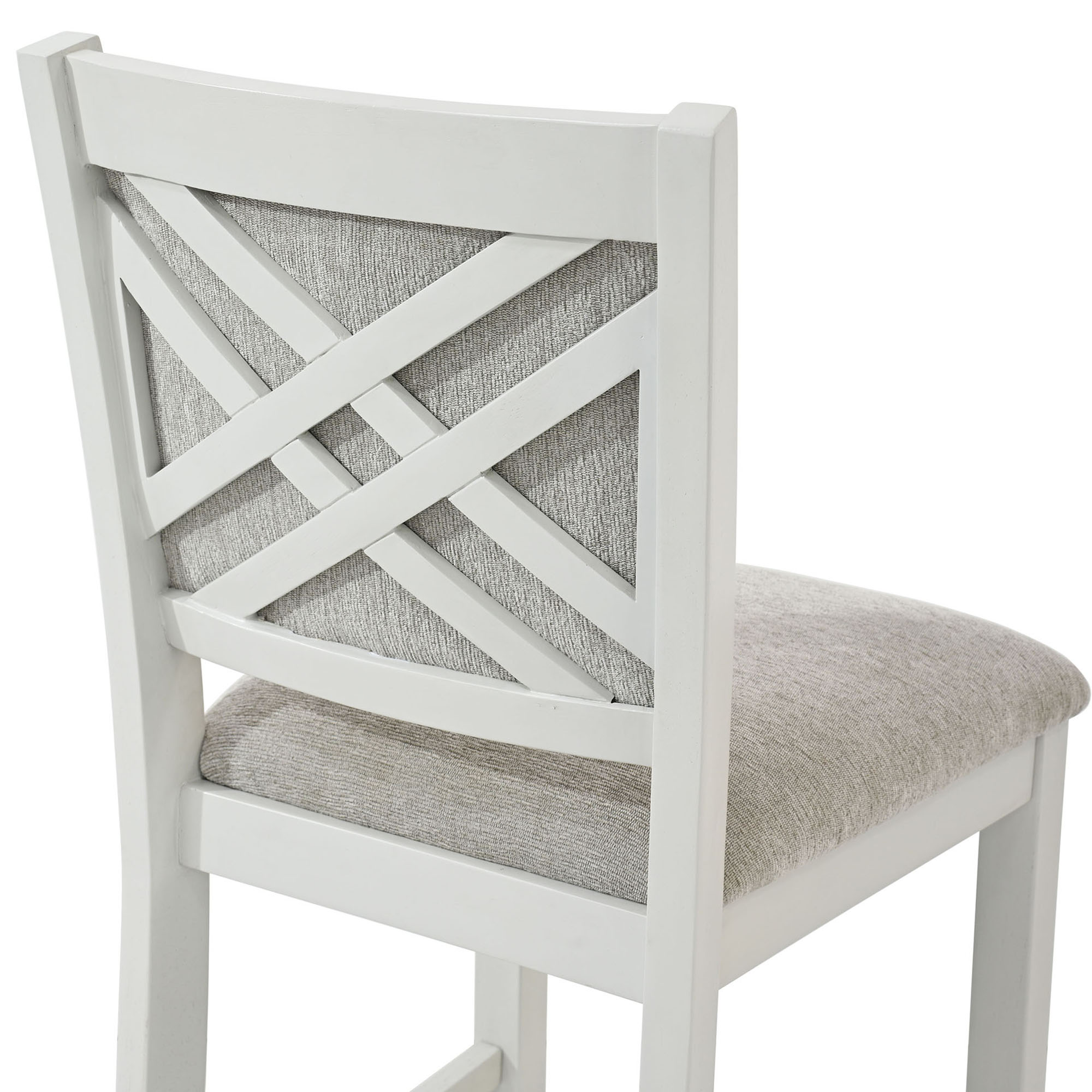 Fun conversations are sure to be had with this casual, 5pc pub table set. The whitewashed finish brings the perfect touch of modern farmhouse to your space. Table stretchers can be used for storage or display.