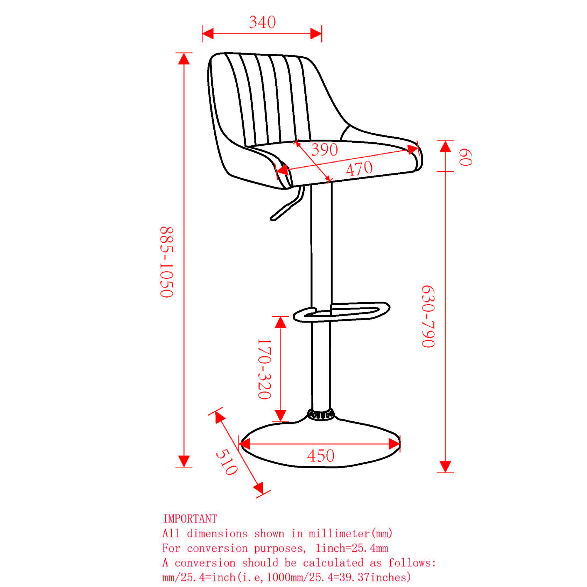 Seat Height (inches) 27.17~33.46