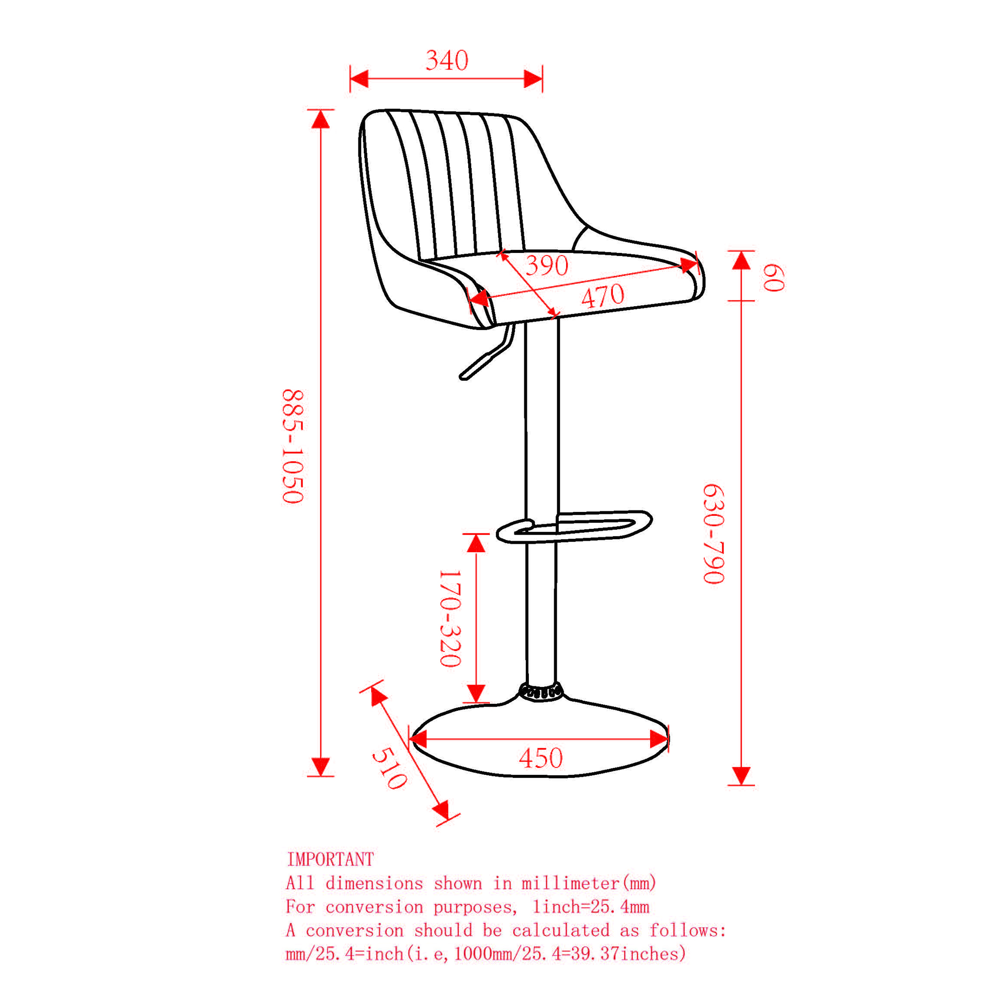 - 360° swivel seat with faux leather upholstery and vertical tufting
