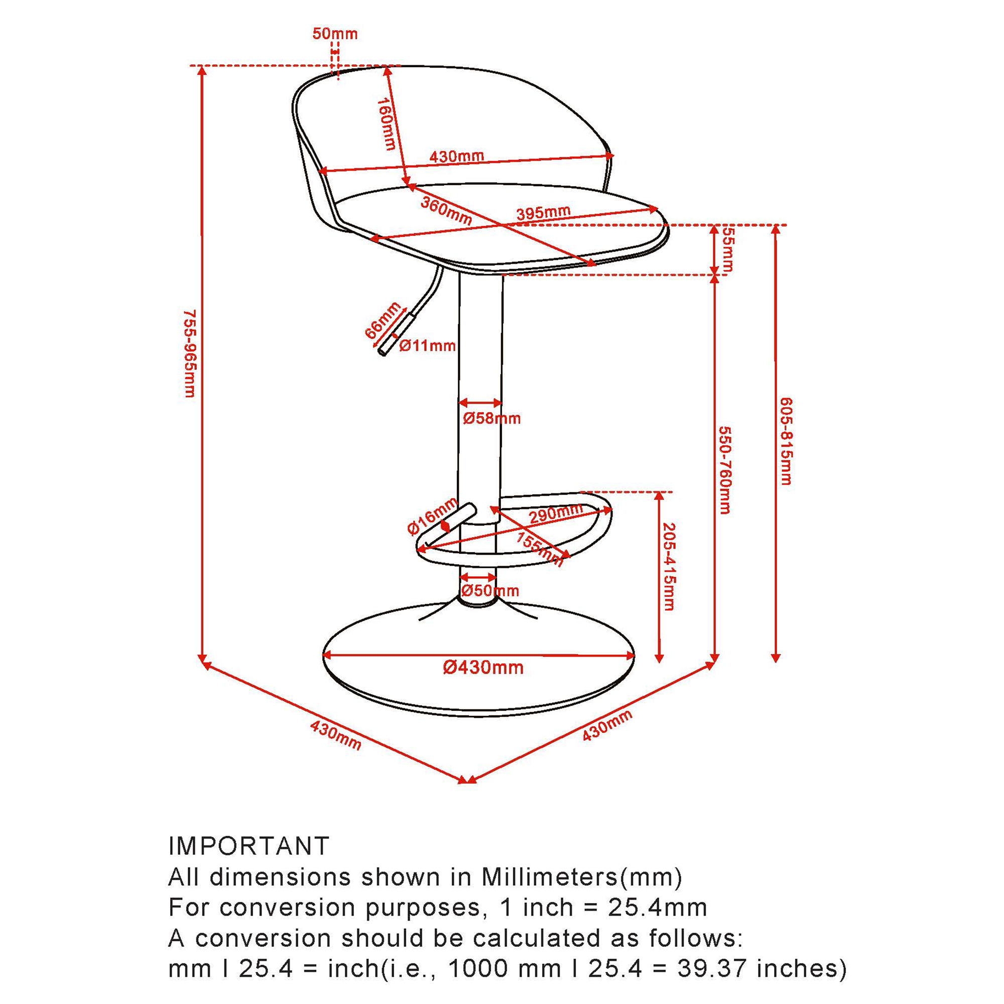 - Air-lift seat height adjustment ranges from 23.75" to 32"