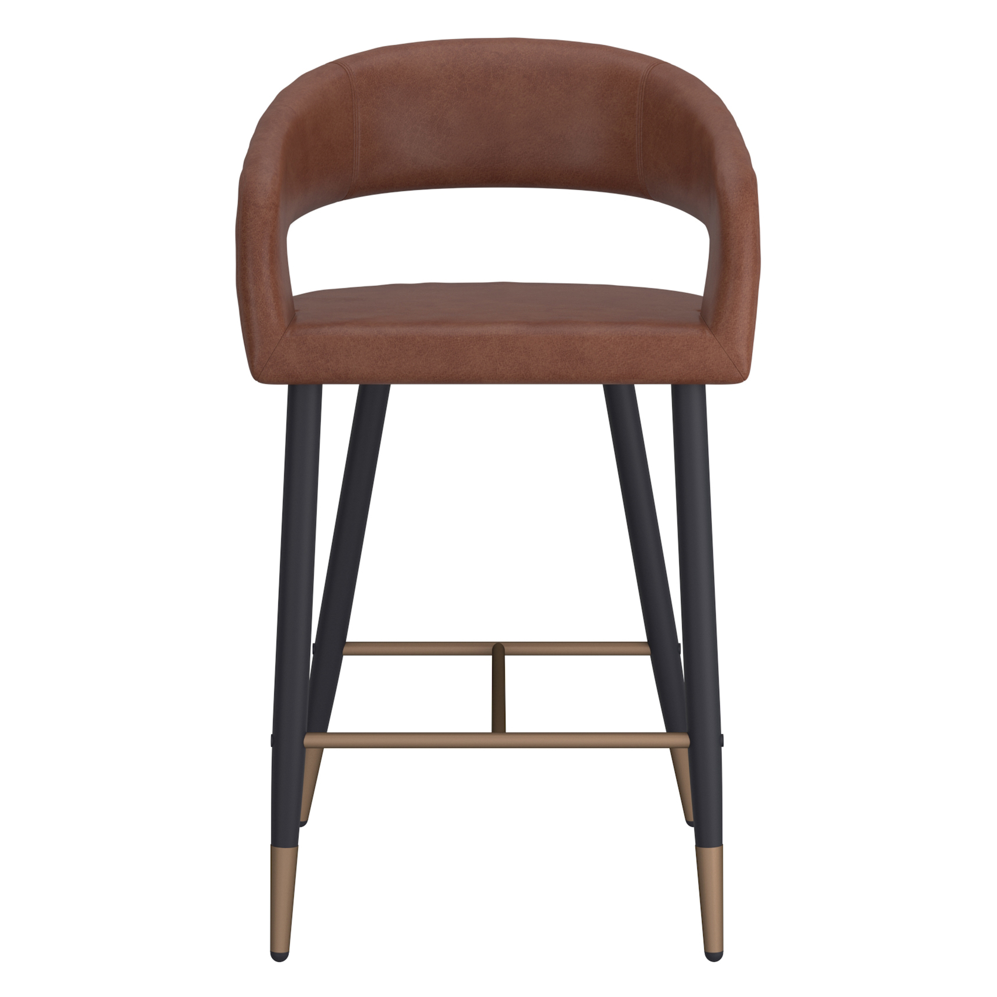 Comfort and style come together to make a statement in your space. This modern counter height stool features a curved high back to offer support for hours hanging out at the kitchen island. The on trend saddle-toned faux leather and black metal base combination is fabulously finished with an aged gold accent that provides the perfect contemporary touch. Use as everyday seating in kitchens or more formal bar settings.