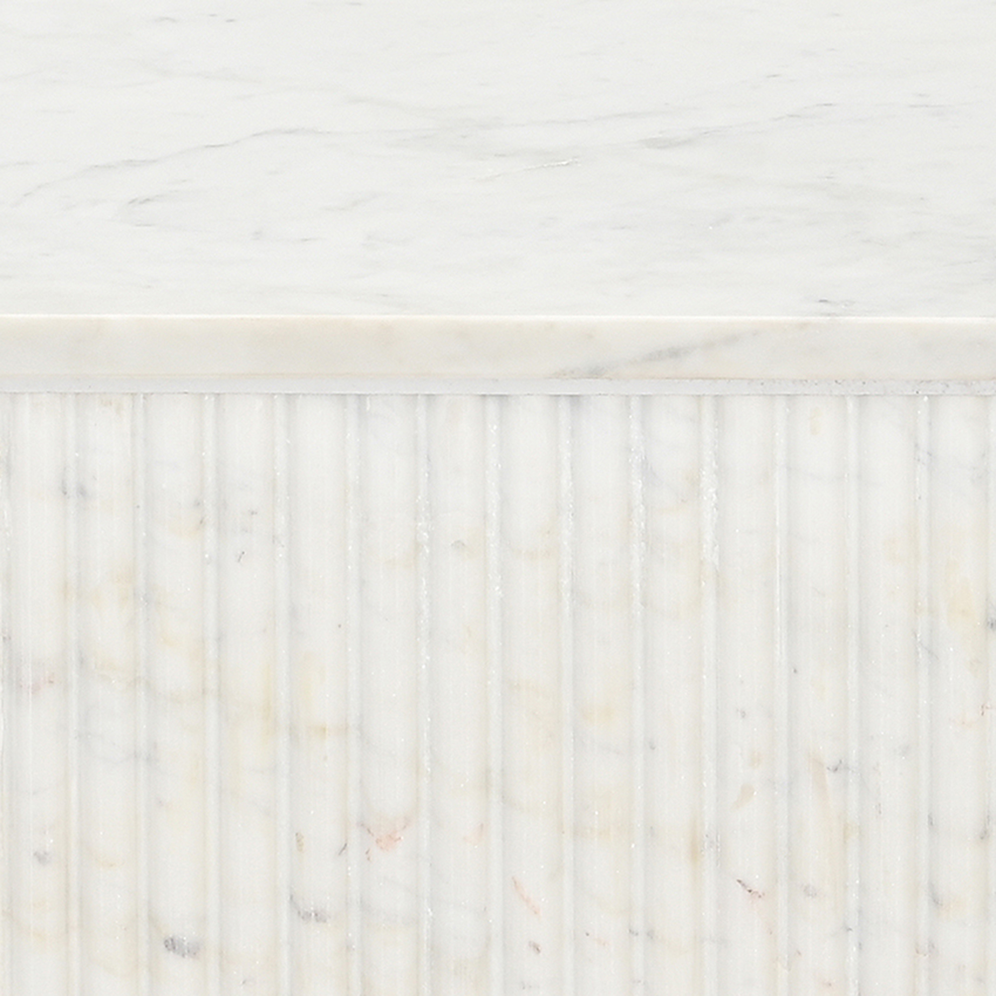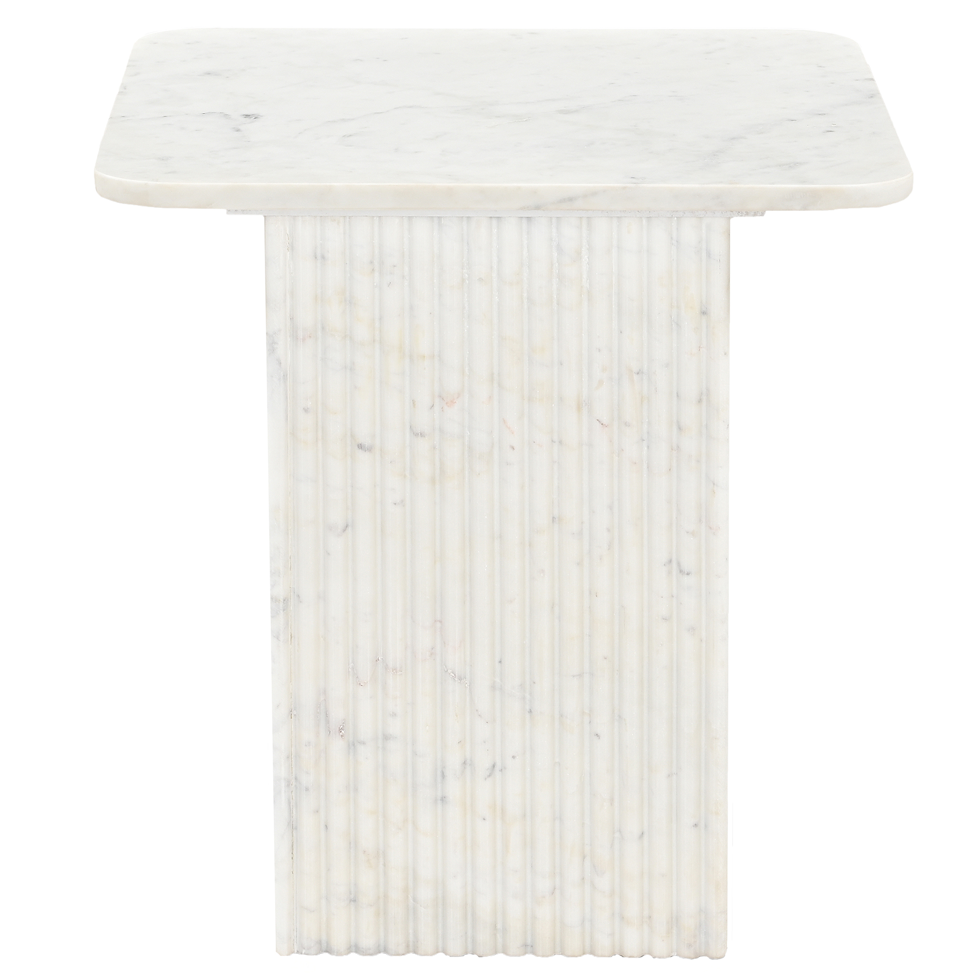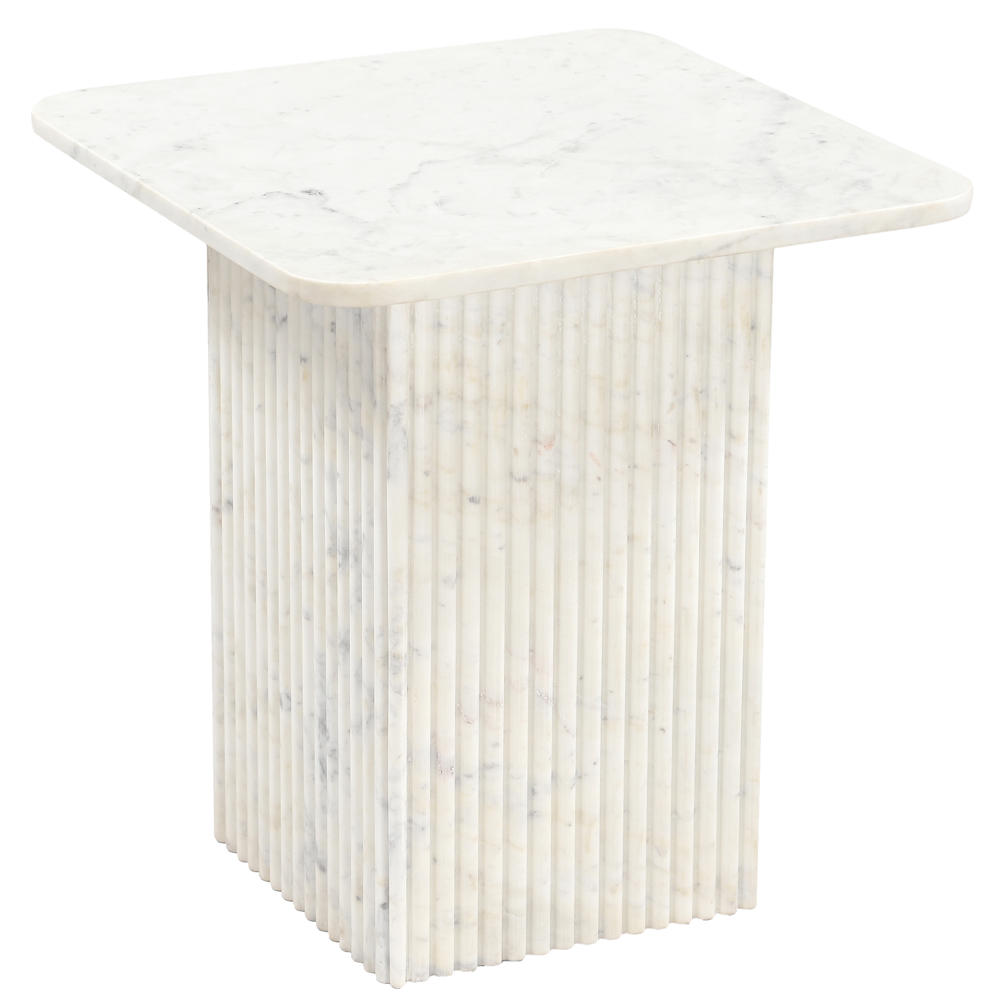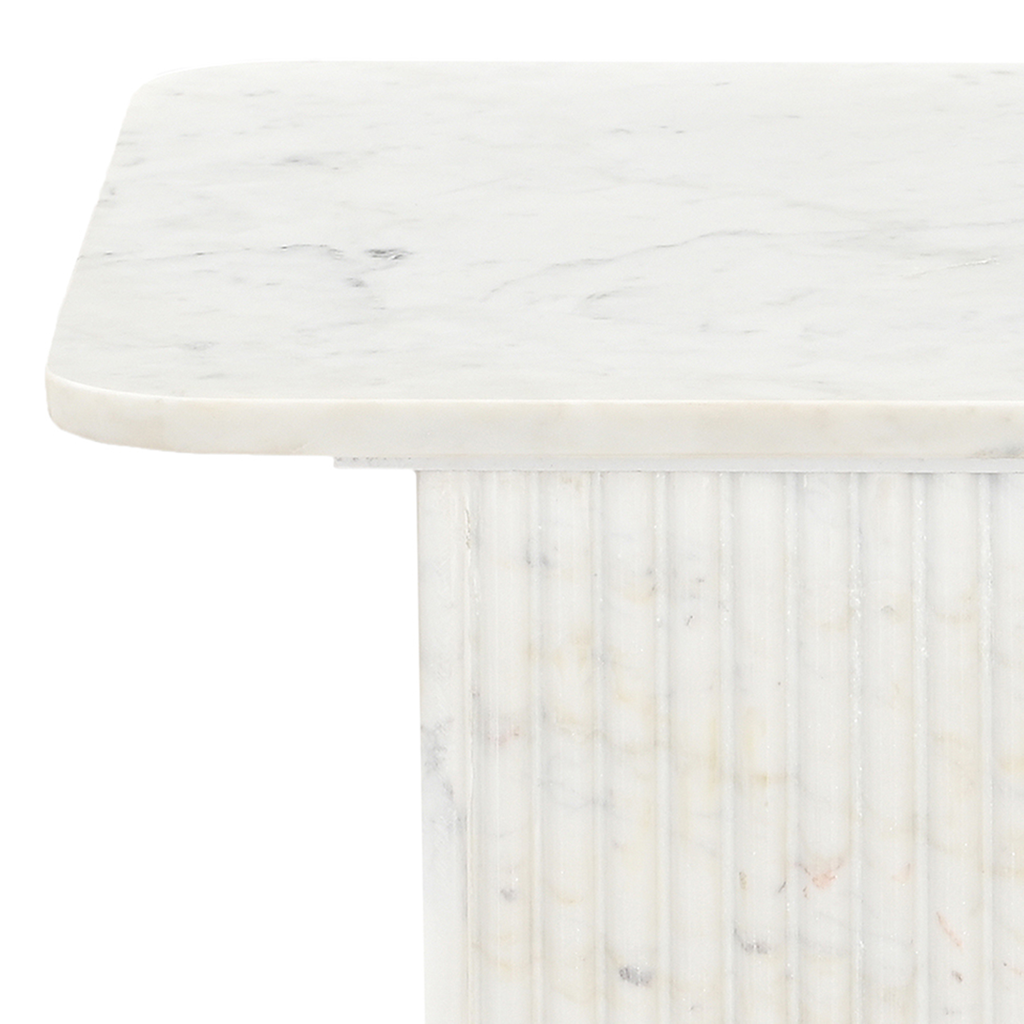 Effortless sophistication with this modern marble table. The reeded pedestal and marble top is a classic Greek-inspired design but given a modern twist with the square shape. Beautiful piece for everyday use or for formal living spaces. Marble is a natural stone product, variations may occur from piece to piece. No assembly required.
