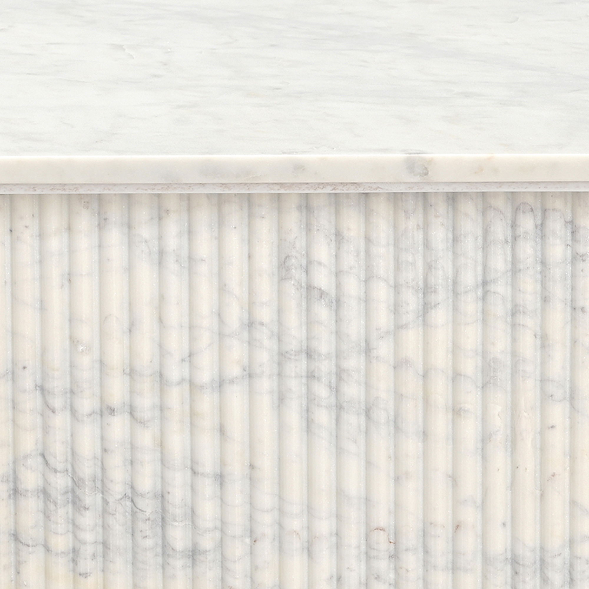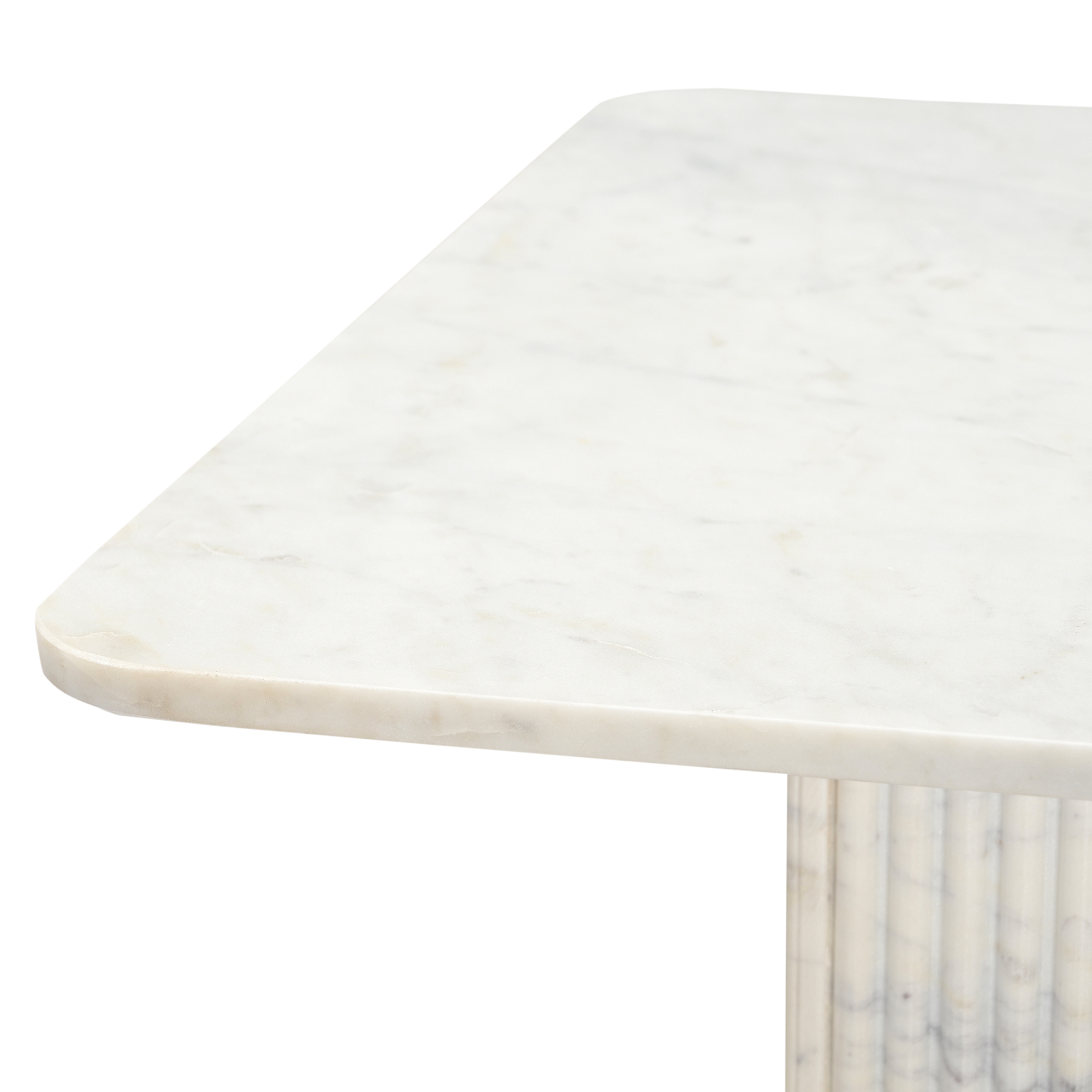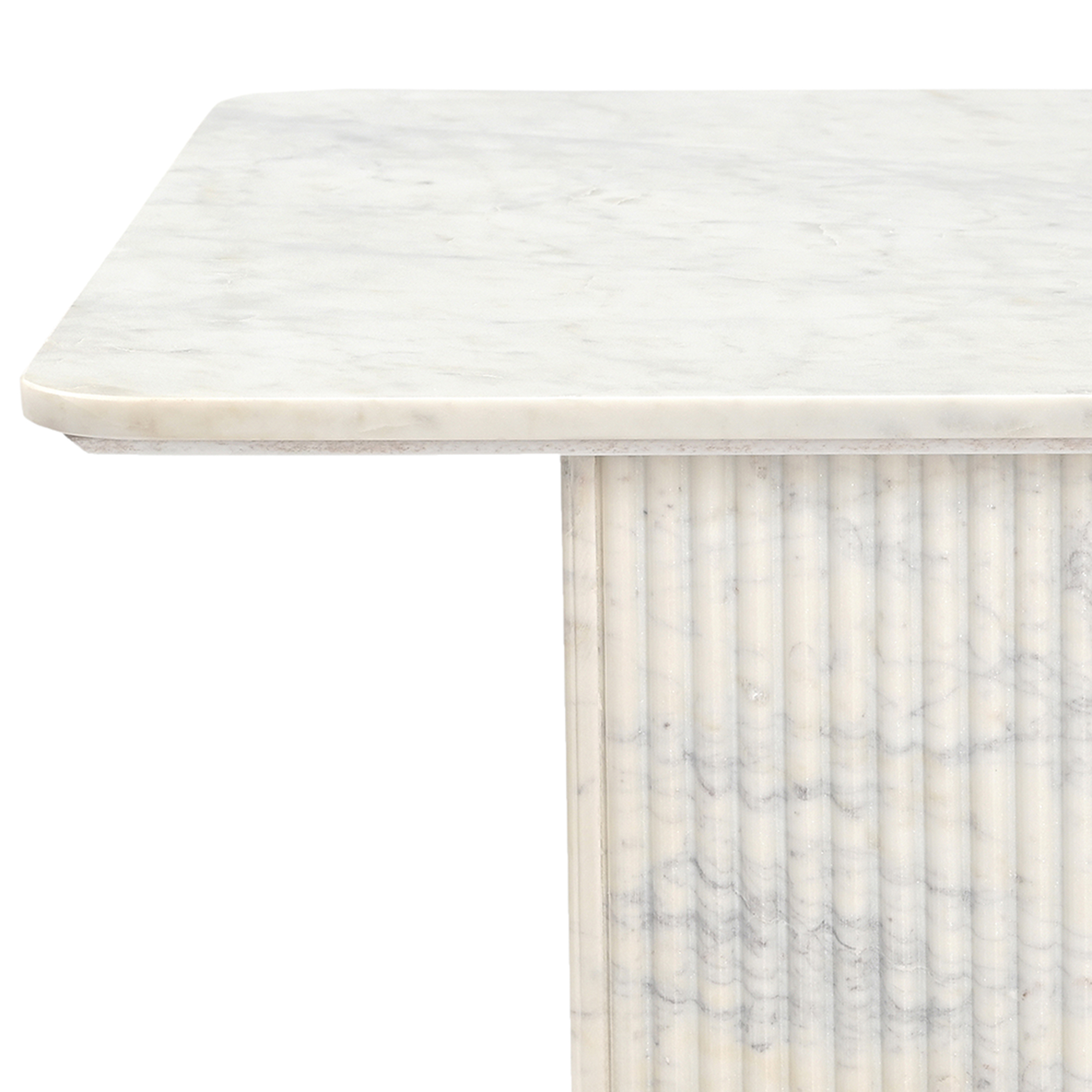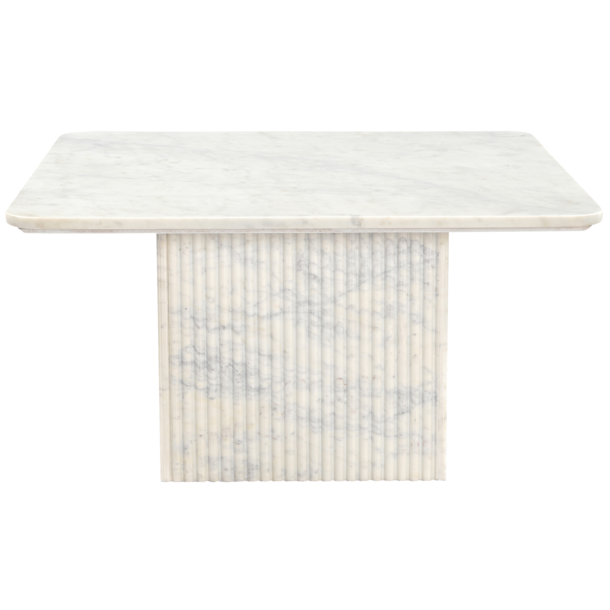 Effortless sophistication with this modern marble table. The reeded pedestal and marble top is a classic Greek-inspired design but given a modern twist with the square shape. Beautiful piece for everyday use or for formal living spaces. Marble is a natural stone product, variations may occur from piece to piece. No assembly required.