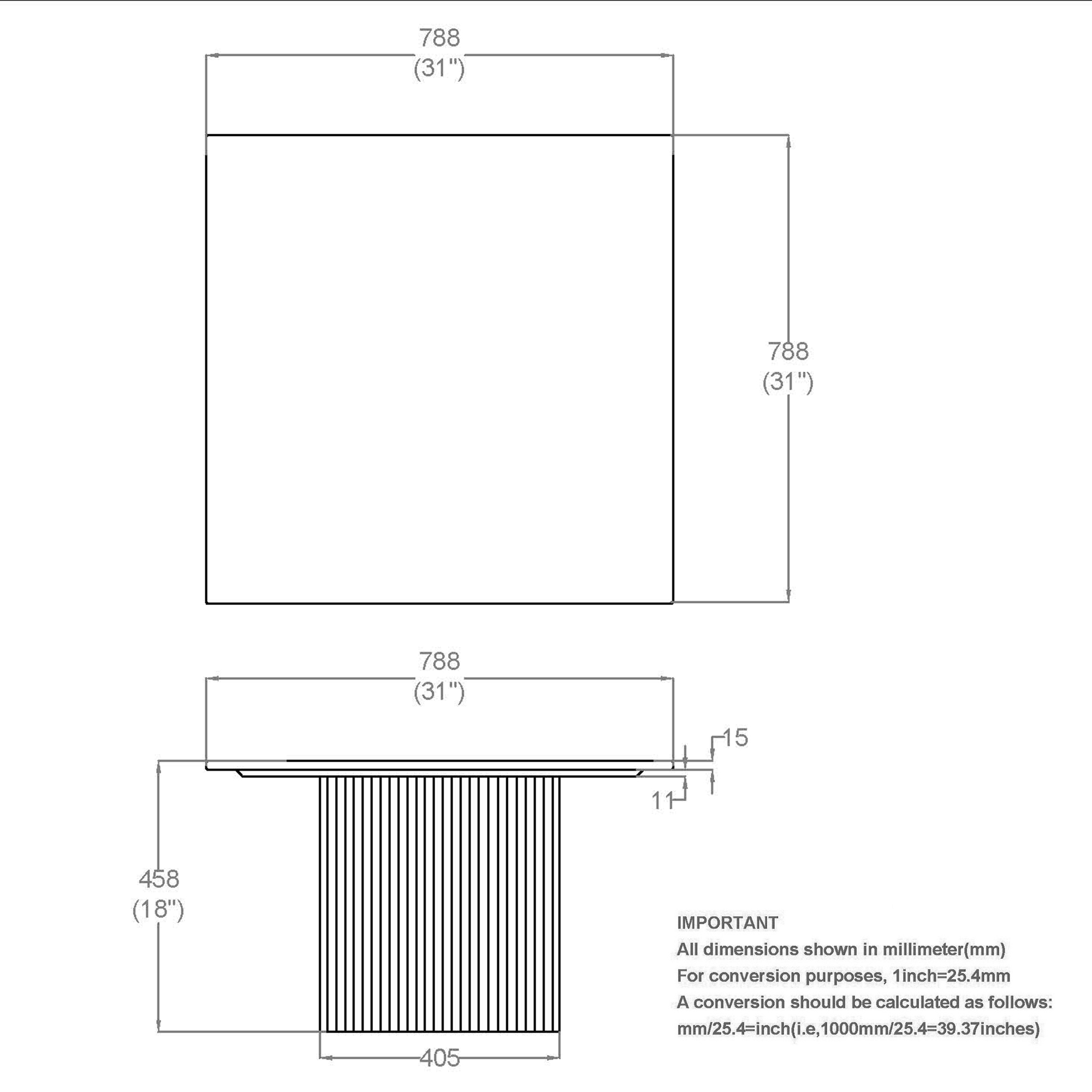 • Dimensions: 31 x 31 x 18"H