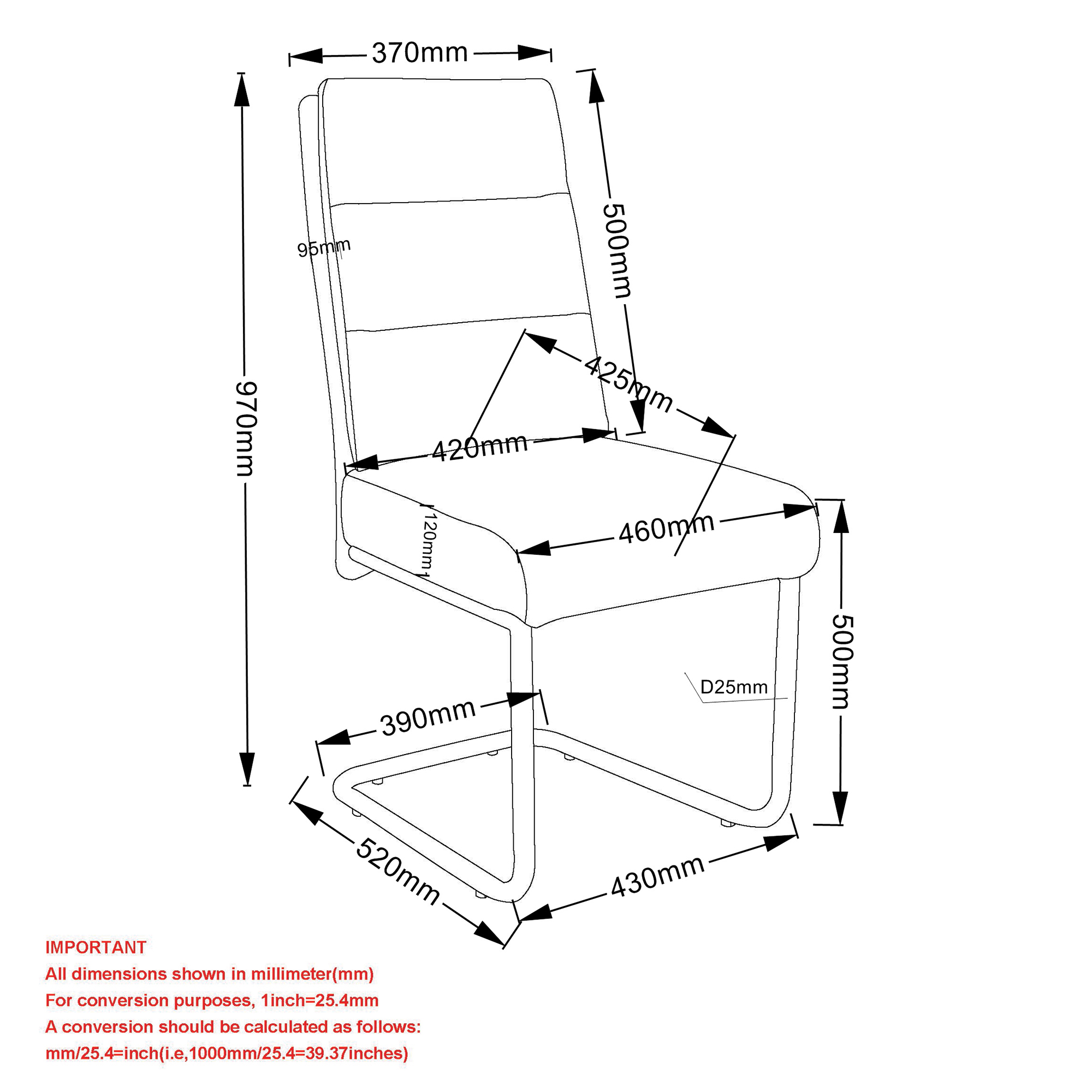 - Black metal c-style base and handle on chair back