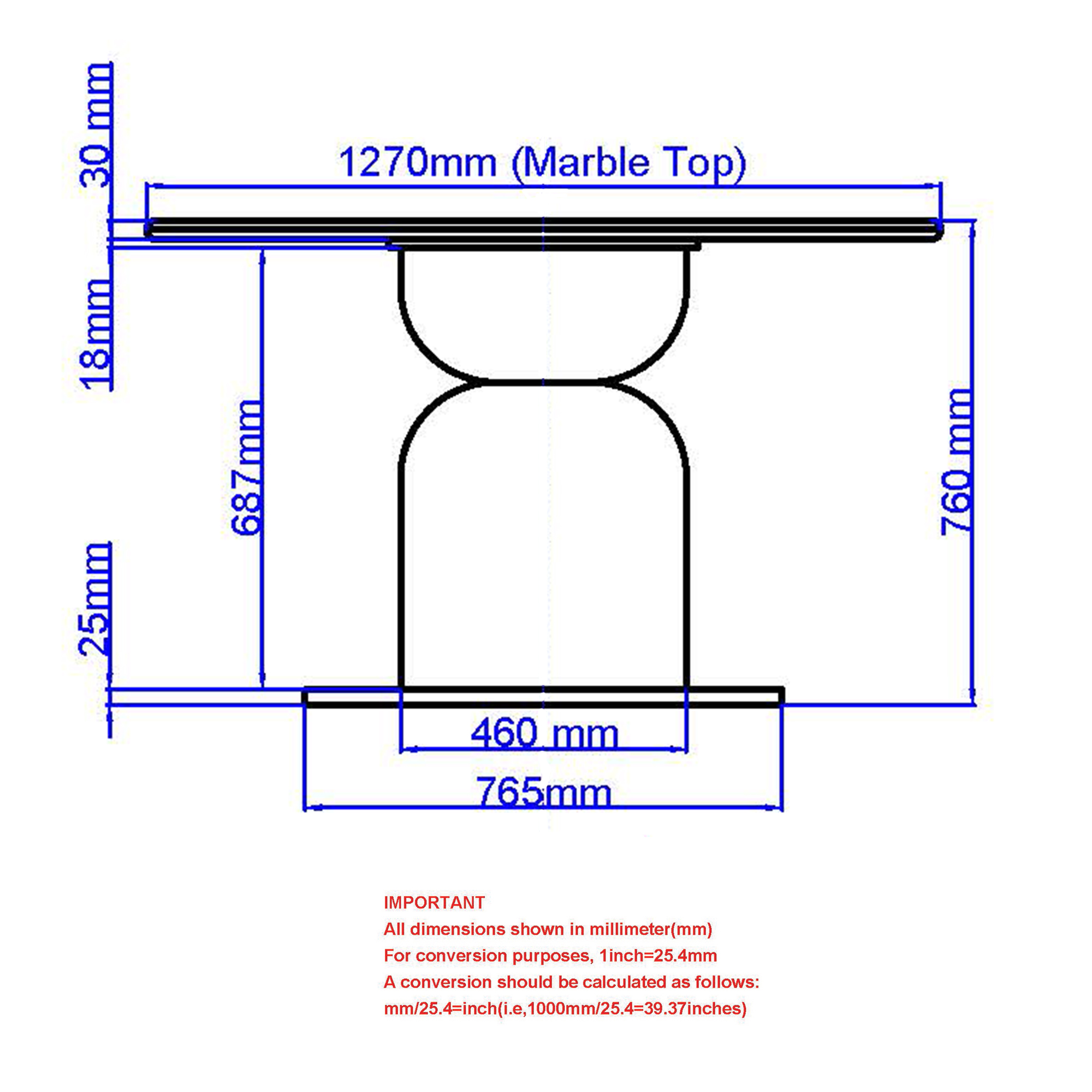 - Thick table top is mango wood with Fantasy Brown marble slab
