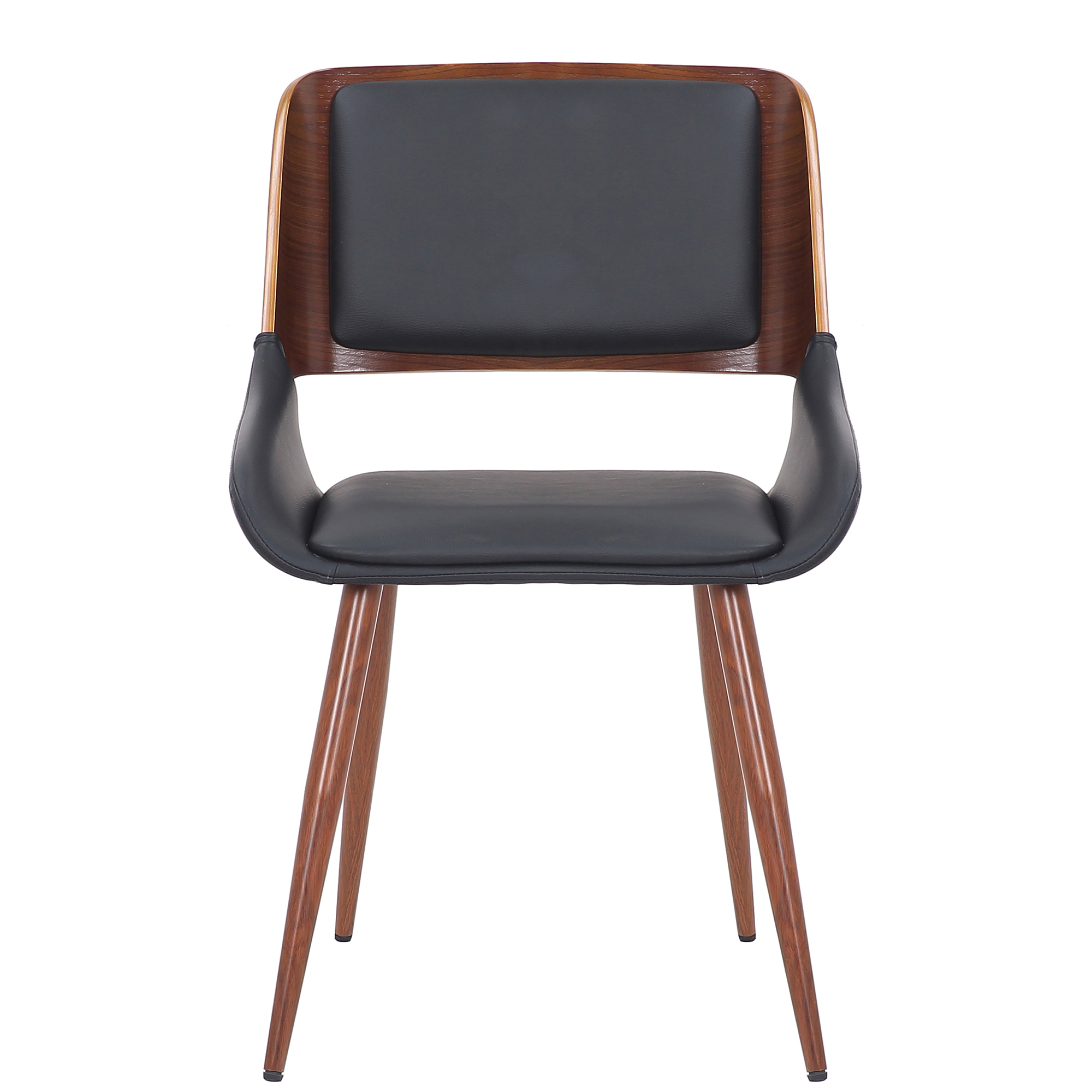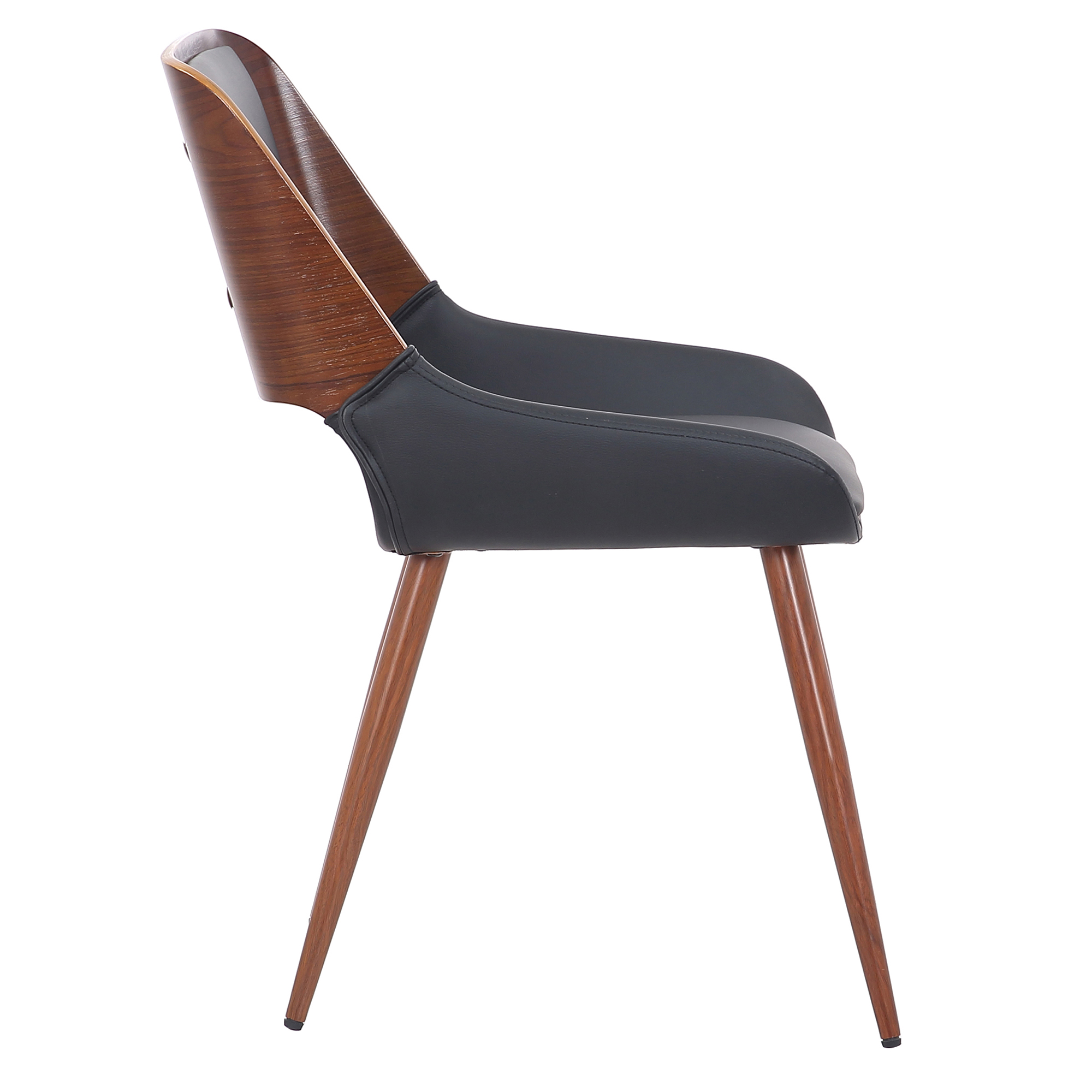 Contemporary beauty that is ideal for small spaces. The clear glass top and airy design create the impression of space. Black metal legs provide sturdy support. When the best of mid-century modern design is integrated perfectly into the current design world, you get gorgeous pieces like this dining chair. The bentwood frame and metal legs are beautifully finished in a timeless walnut, and the cushioning is all upholstered in a matte faux leather, creating the perfect modern mid-century piece that will work in any formal or casual dining space.