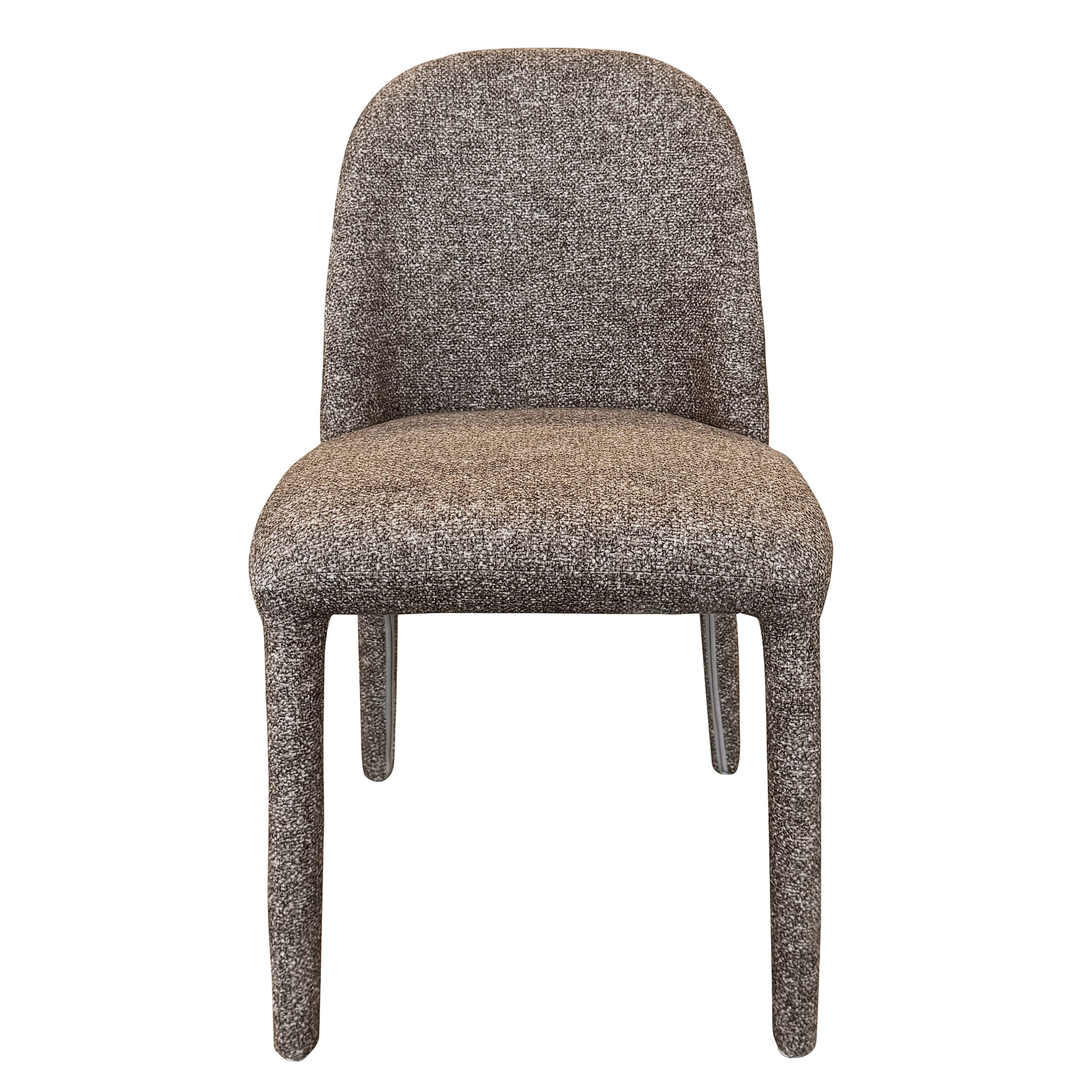 This statement piece will be the centre of attention in your home. The reeded finish on the pedestal is perfectly topped with a sintered stone top creating a refined piece that will elevate your carefully designed dining space. The tone-on-tone travertine finish is an easy match to various decor styles. The contoured back on this beauty of a dining chair will provide hours of seated support while the clean lines will work well in any contemporary or transitional space. Soft, textured fabric upholstery covers not only the full seat and back, but also the metal legs, creating a monotone look that will make a big style statement.
