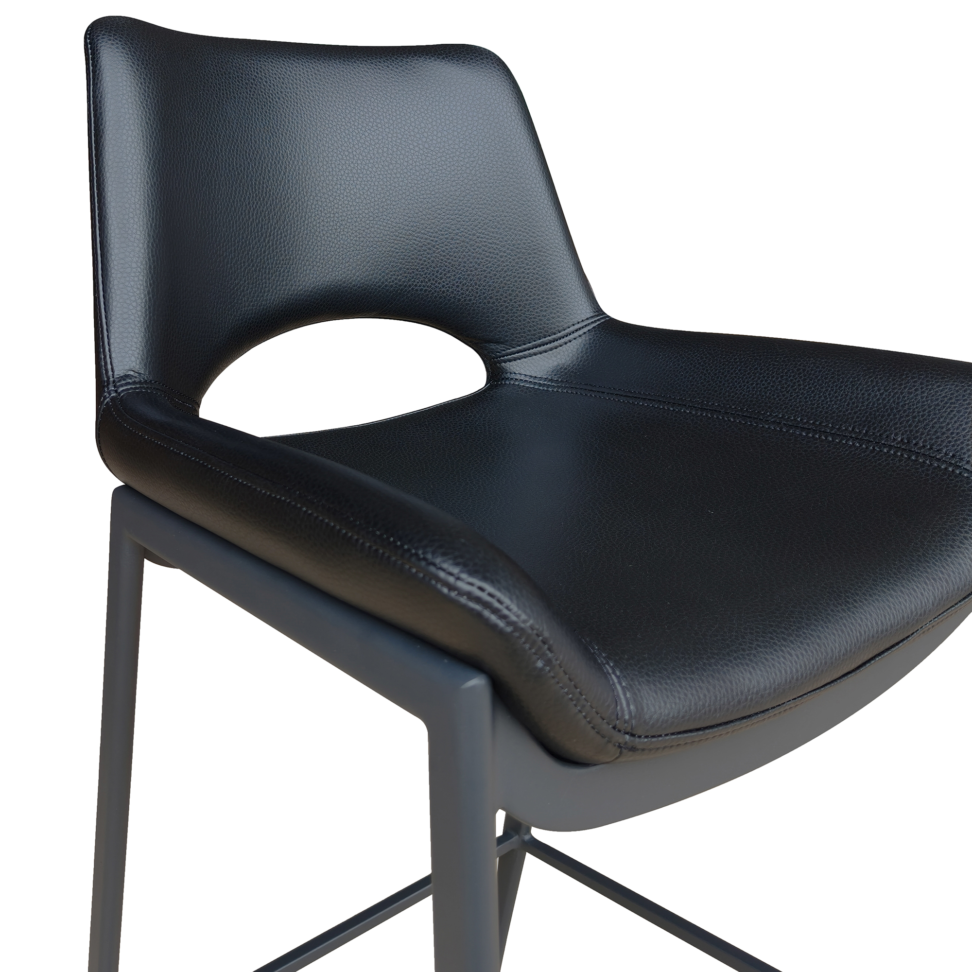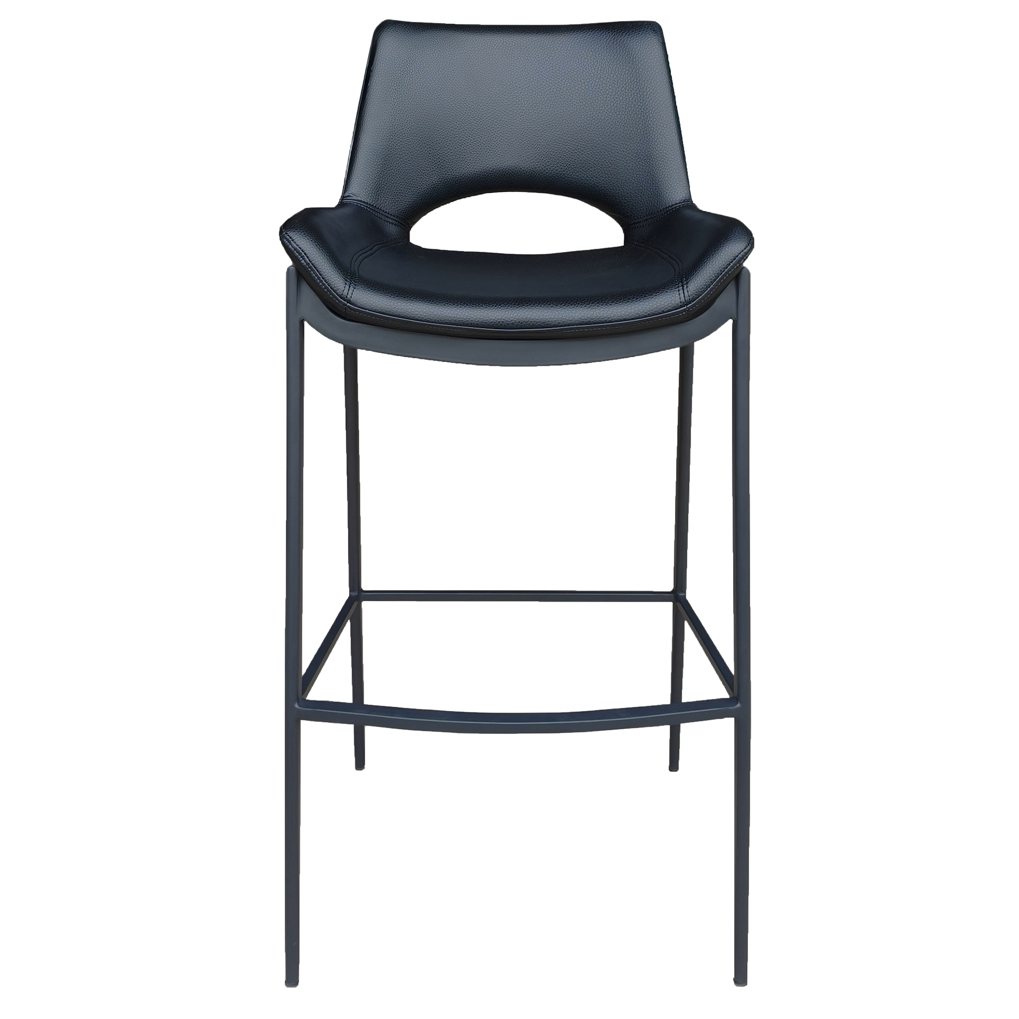 Experience high-class seating firsthand with these designer-inspired stools. The bar height seating is perfect for that entertainment space. Textured faux leather and metal base with footrest come together to create the perfect contemporary design for your space. These commercial-grade pieces are suitable for residential or commercial spaces.