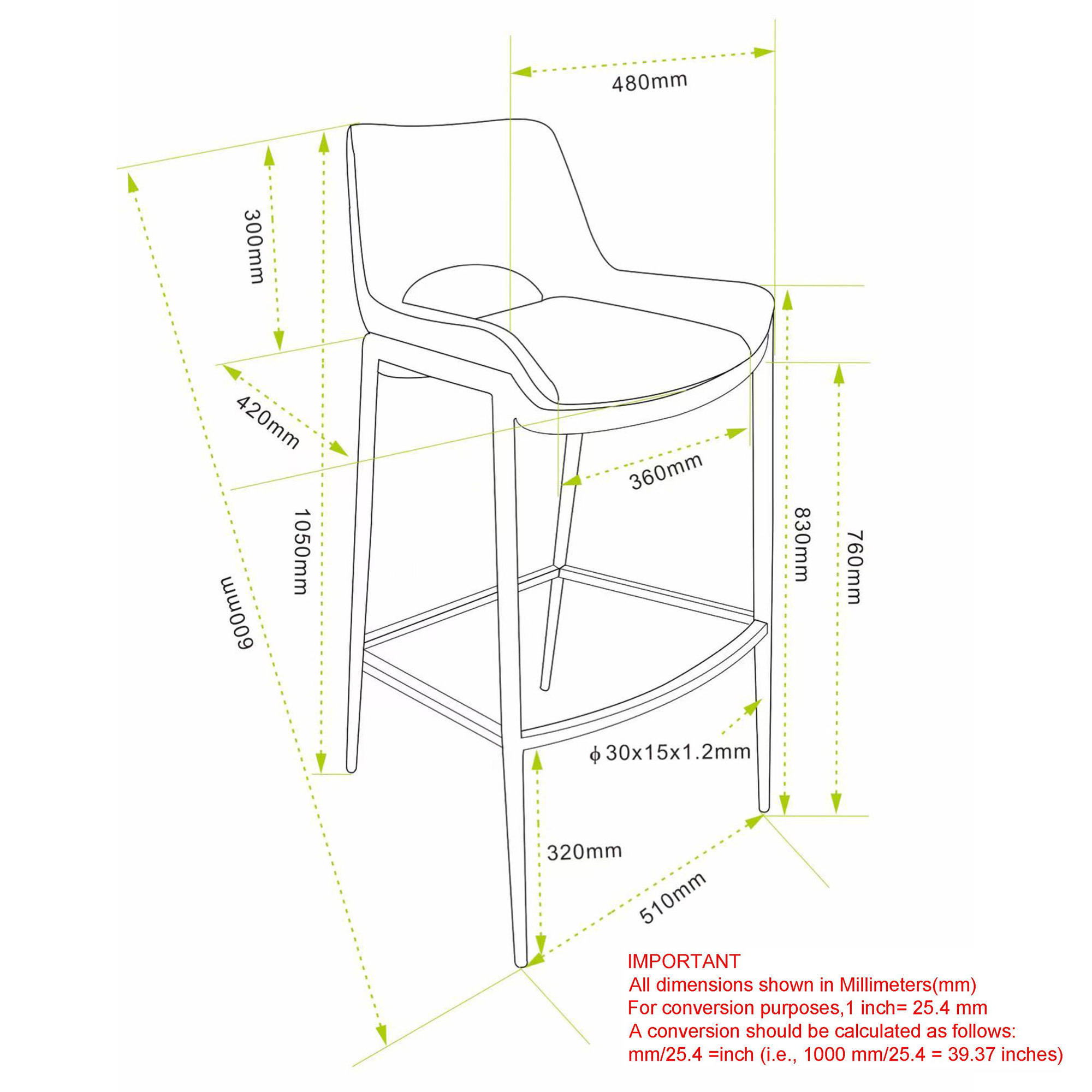 - 30" height bar stool with fixed seat, suitable for residential or commercial use