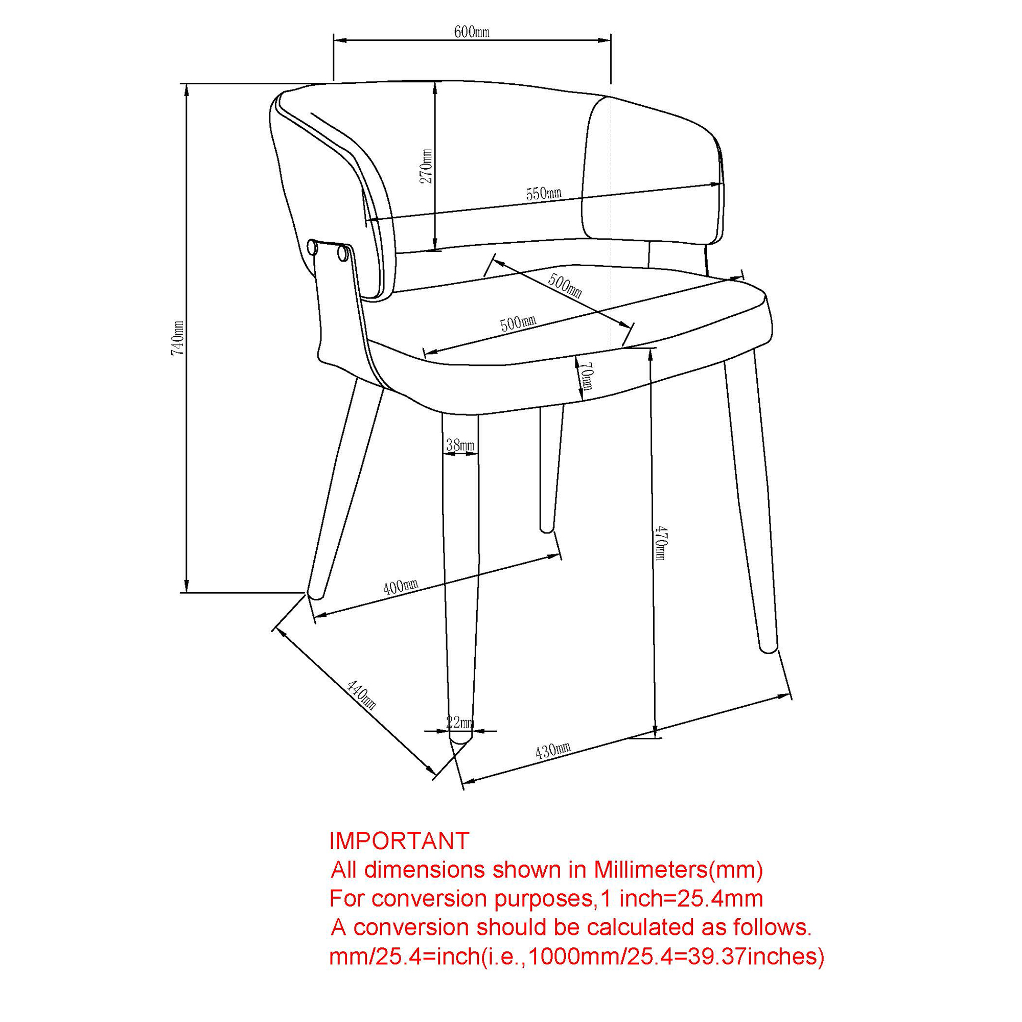 - Modern dining or lounge chair, suitable for residential or commercial use