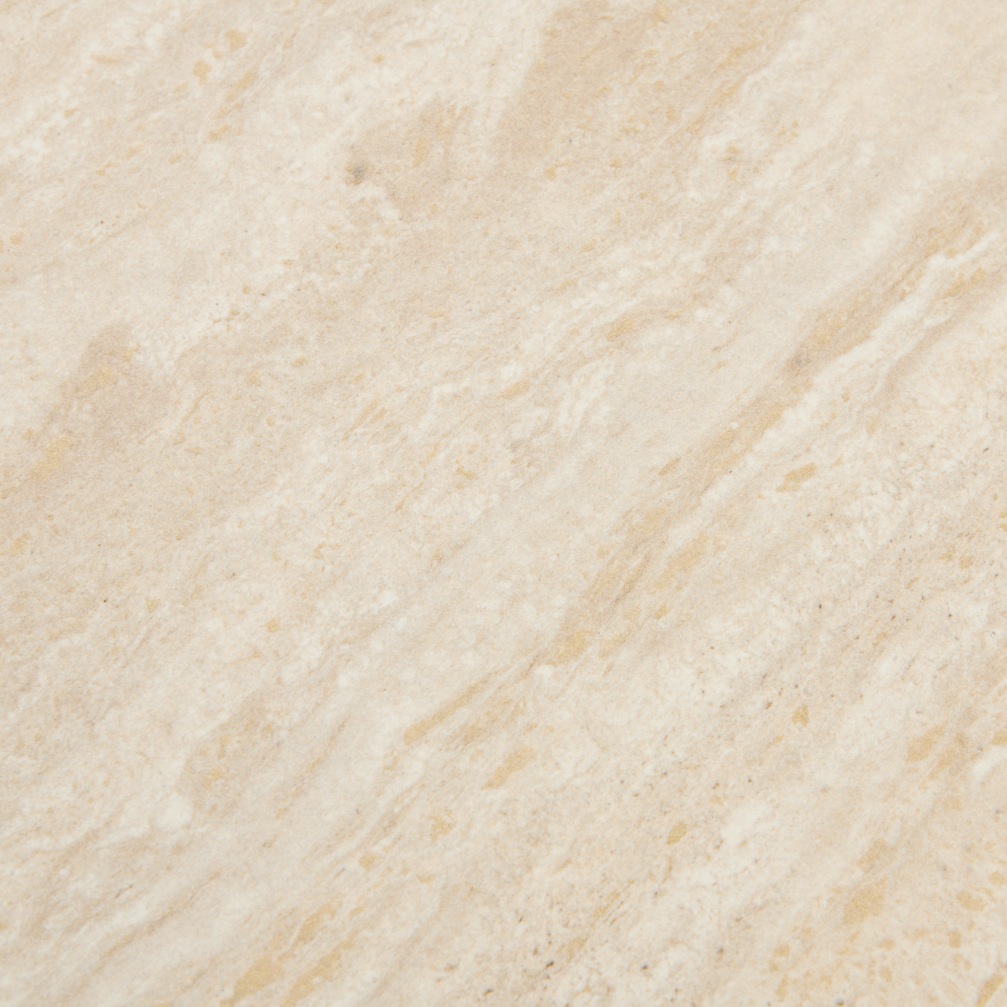 - Approximately 1.5" thick, sintered stone and engineered wood table top with bevelled edge