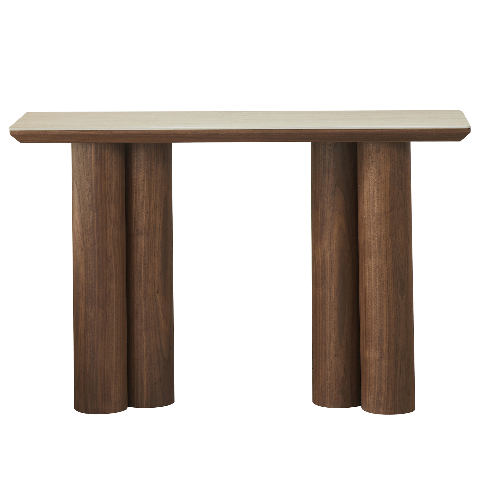Seaton Console Table, 47.25" in Walnut and Travertine